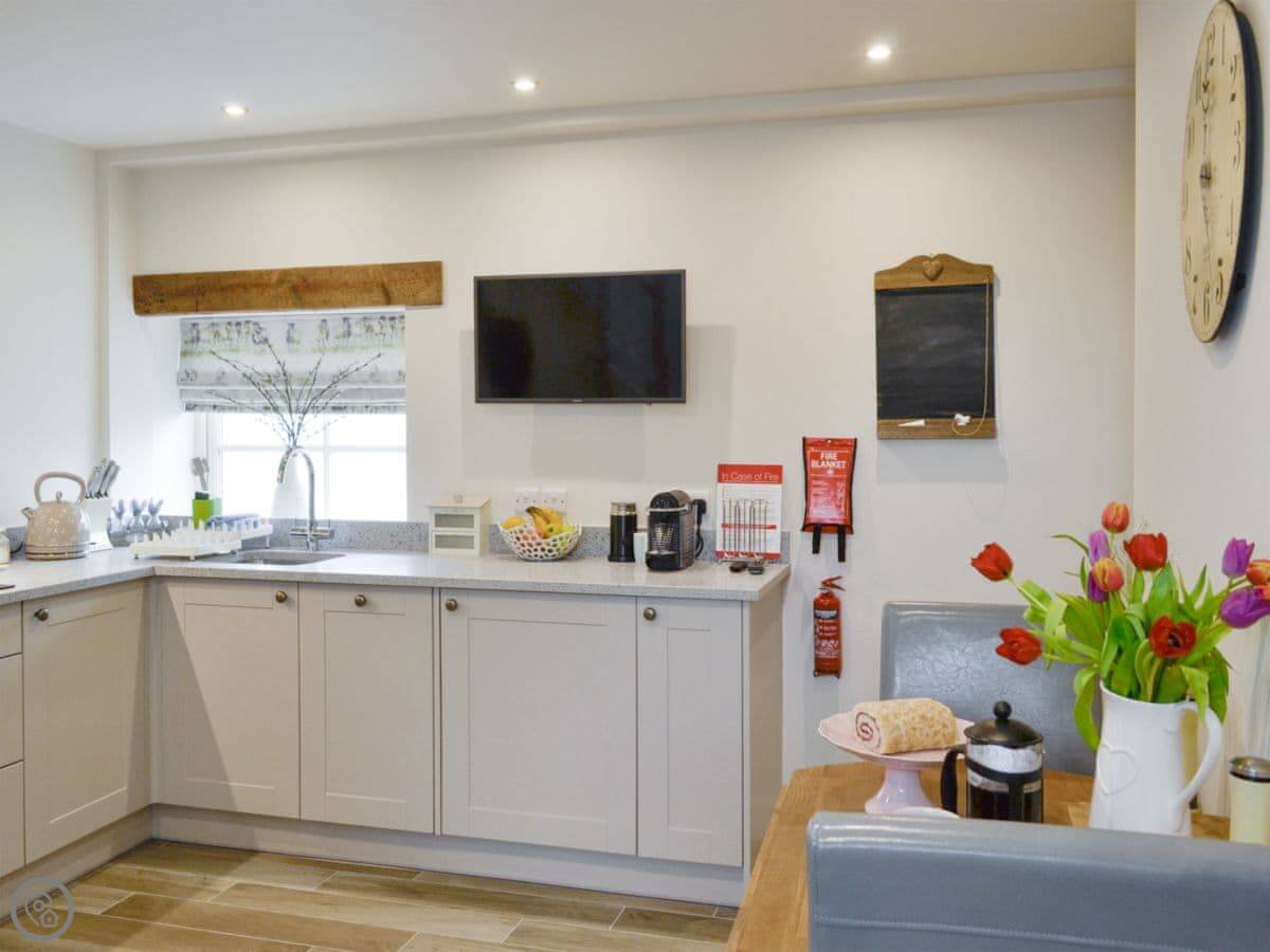 This delightful barn conversion, one of three, awaits you at lovely Berth y Bwl Farm, a working sheep farm, in Trelogan. It has been finished to a good standard, and offer contemporary comfort and provides a great base for exploring the area. Ewe Bach Cottage sleeps two, so is ideal for couples looking for a romantic break. The cottage is located in a quiet area but within easy reach of the golden sandy beaches in nearby Prestatyn. There are pubs nearby and walks are available from the door, indeed the starting point of the 176 mile Offa’s Dyke footpath is close by, making this location perfect for walkers and cyclists. Explore some of the local places of interest such as Rhyl, Holywell and St Winefride’s Well, Ruthin with its pretty town square and cafés, Colwyn Bay, home to the Welsh Mountain Zoo, or Llandudno, with the famous Great Orme’s Head. In the other direction, the city of Chester is well worth a visit with its unique shopping Rows, city walls and cathedral, together with Chester Zoo which is great for a family day out. Why not try your hand at some of the outdoor activities, or take a ride on a steam train in Llangollen, whilst historic Conwy, and Betws y Coed and the Snowdonia National Park are also easily accessible. Beach 5 miles. Shop 1½ miles, pub 2 miles, restaurant 5 miles.