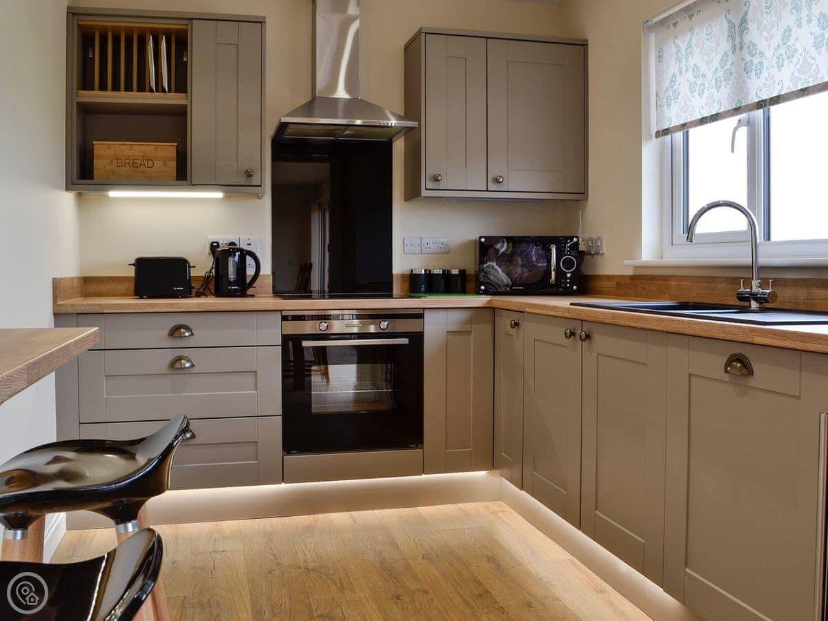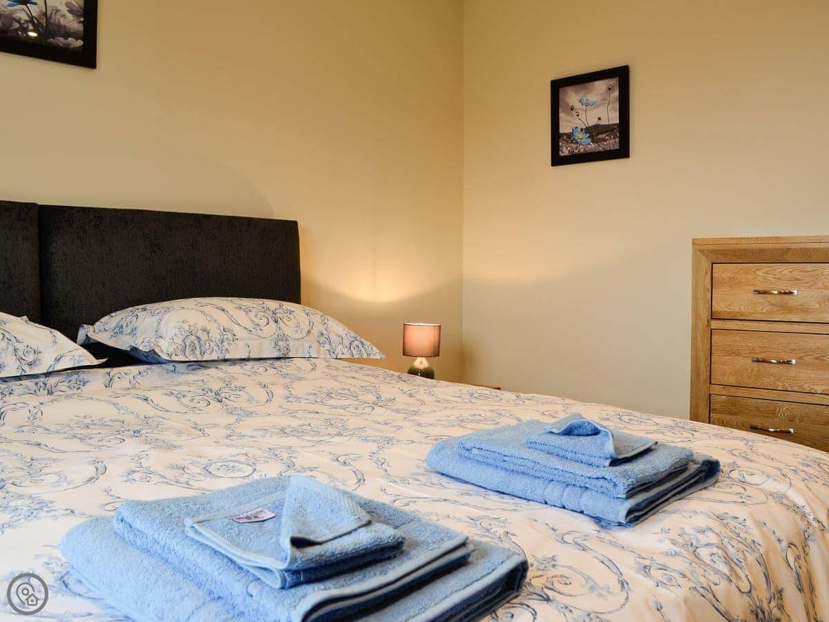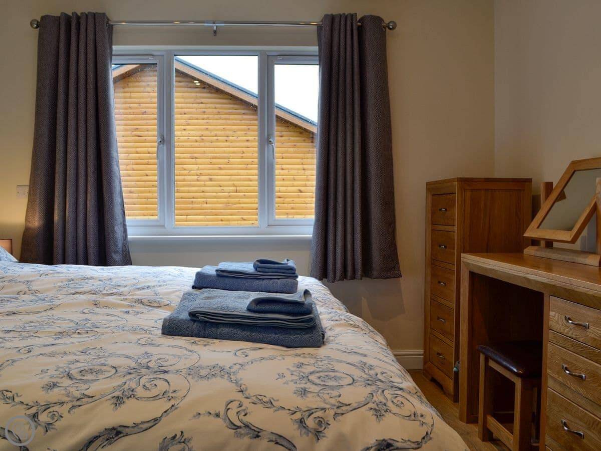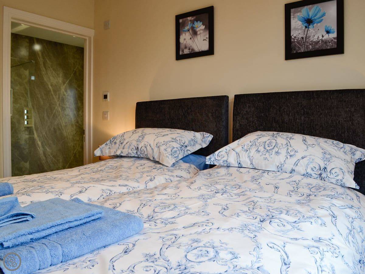 It sleeps four. Two bedrooms, both with their own bathrooms. It's a 5 Star place, which means it's well-equipped and finished to a good standard. There's underfloor heating and a wood burner for cooler nights.