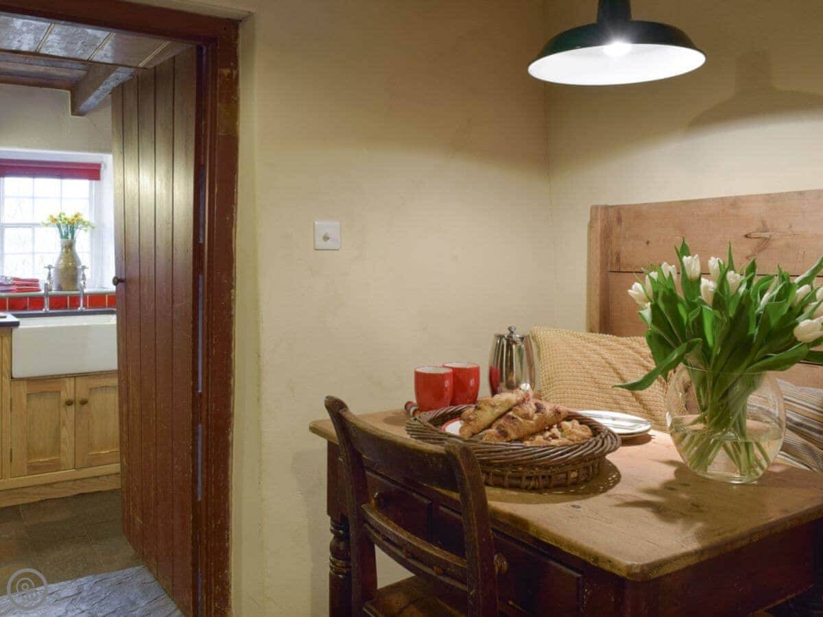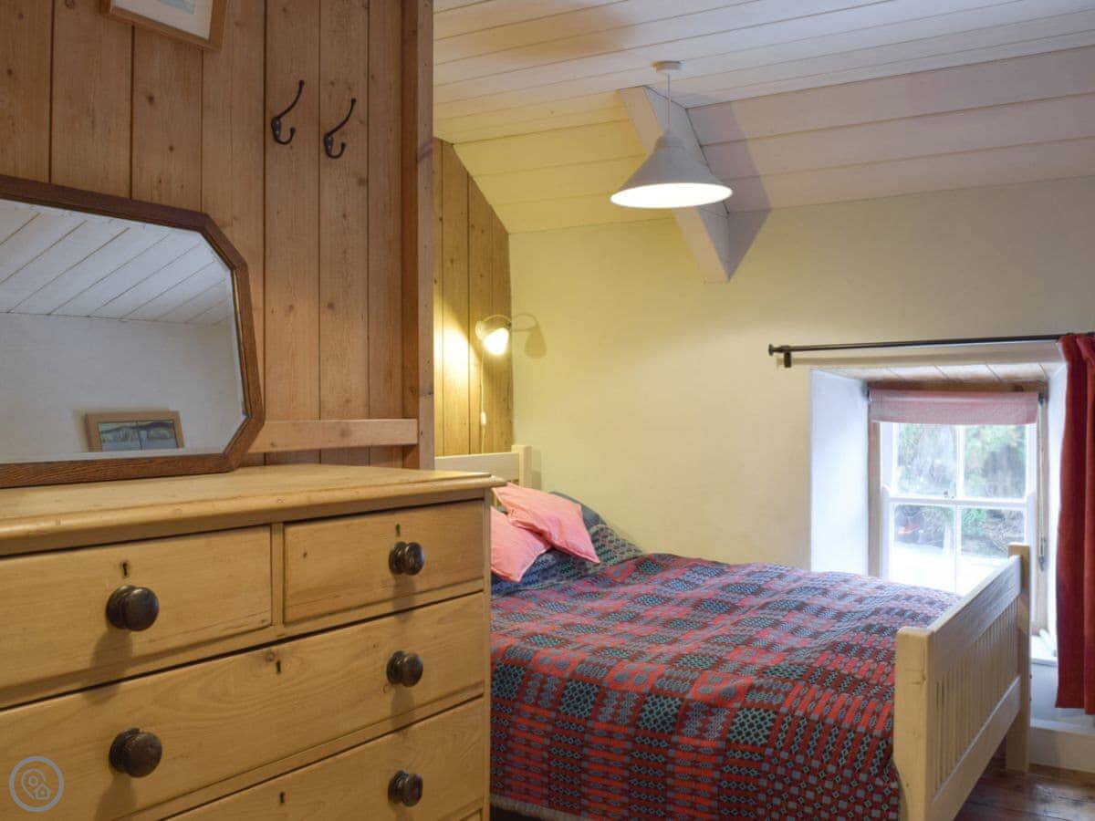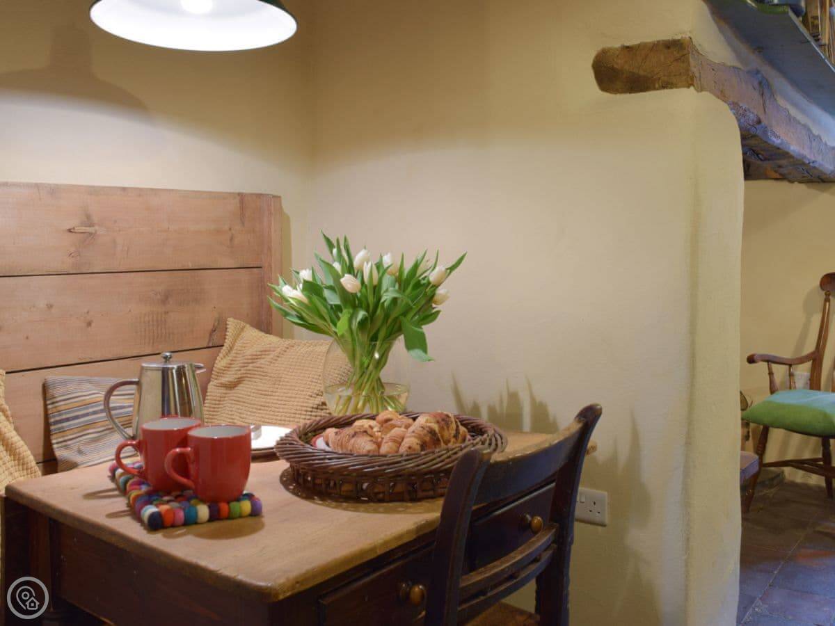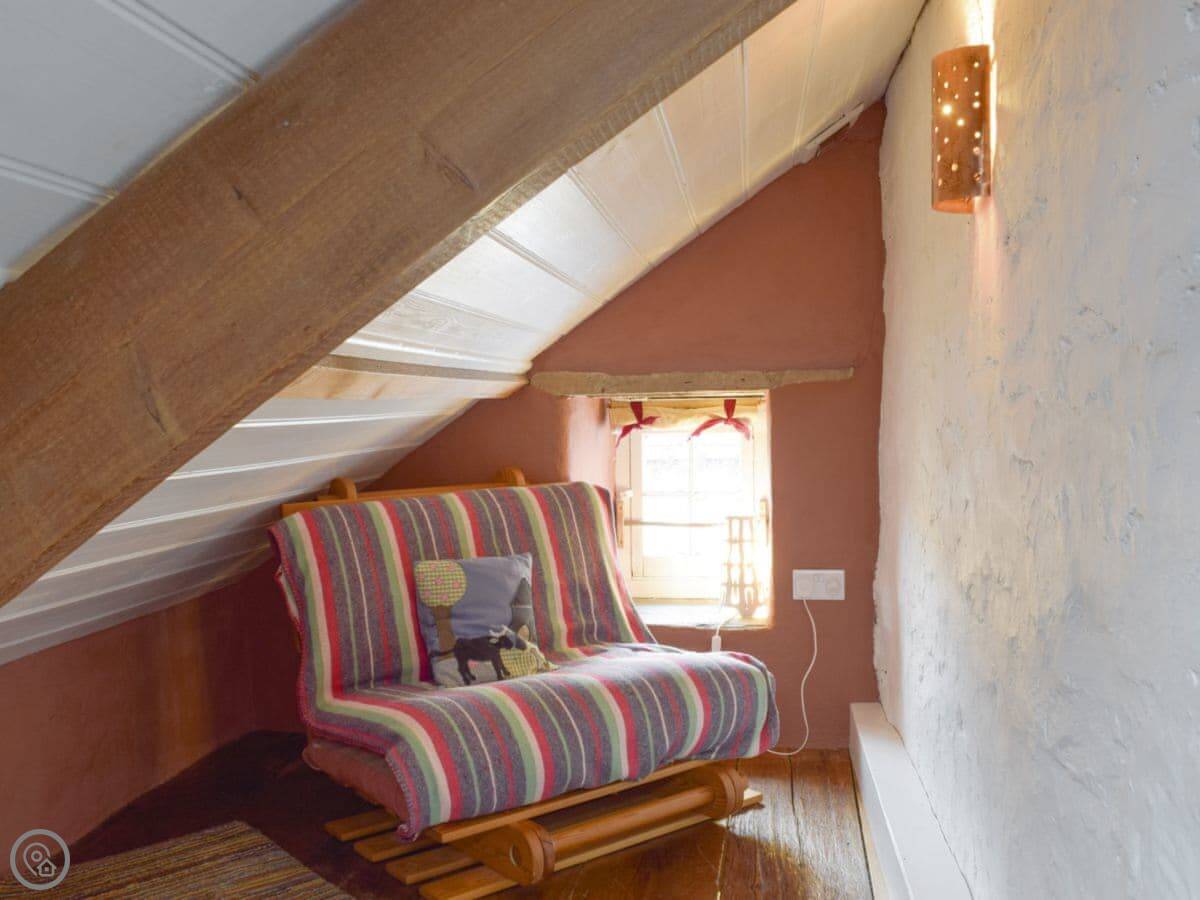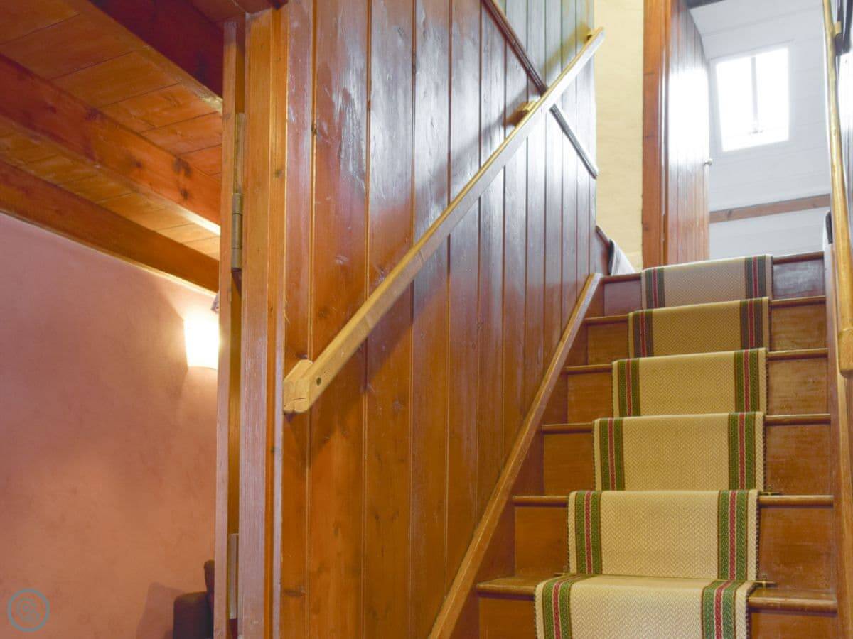 The stairs are quite steep, and the ceilings are low in places. The floors downstairs are the original quarry tiles, so they're hard and a bit uneven. There are two wood burners, one in the main living room and one in the smaller sitting room.