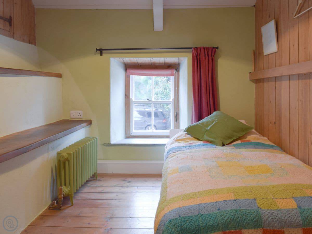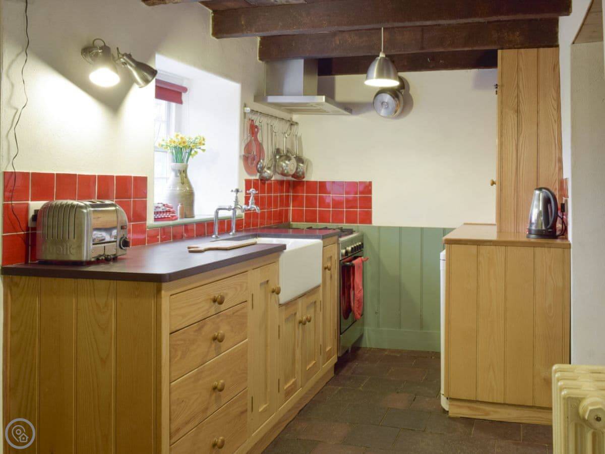 The kitchen has a Belfast sink and you get a good view down the valley while you're doing the washing up. The garden is out the back, a bit up the bank.