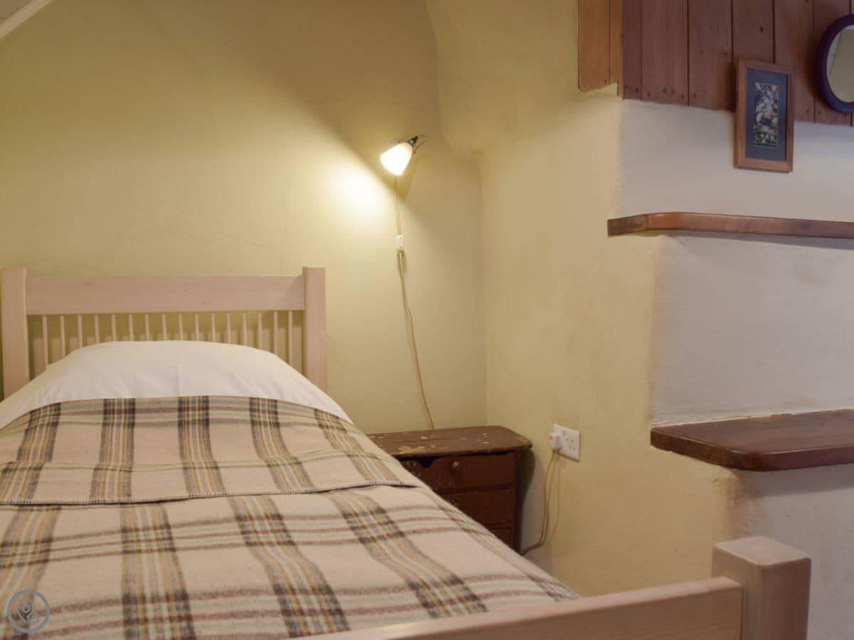 It sleeps four. Two bedrooms, one bathroom. It's a 3 Star property. We renovated it ourselves after it was empty for decades. We used lime plaster and reclaimed materials where we could. It's not fancy, but it's solid and full of character.