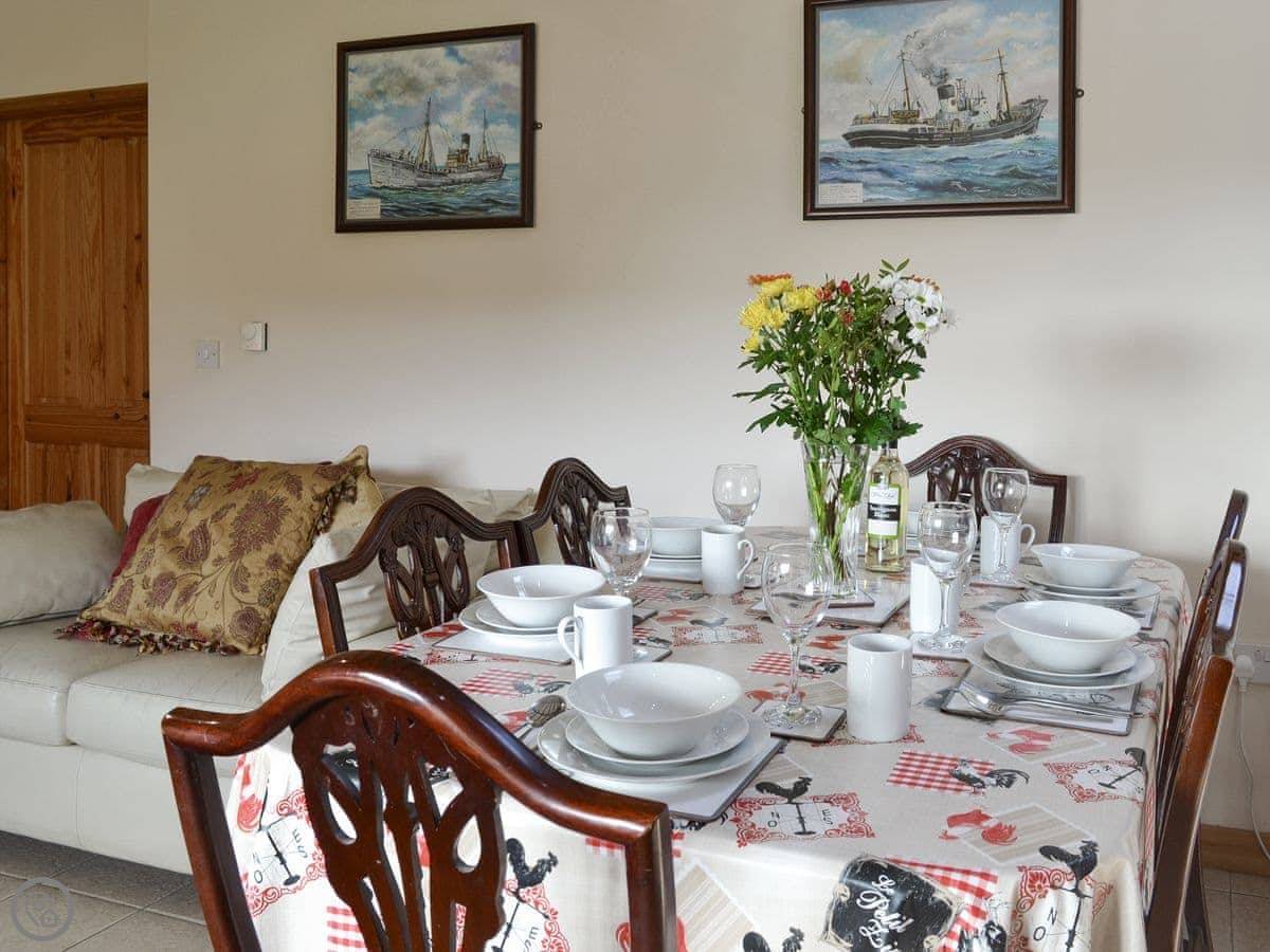 For facilities, it’s got what you’d expect: a washing machine, dishwasher, WiFi, TV. Bedding and towels are included. We can provide a cot and a highchair. You can bring up to two dogs.