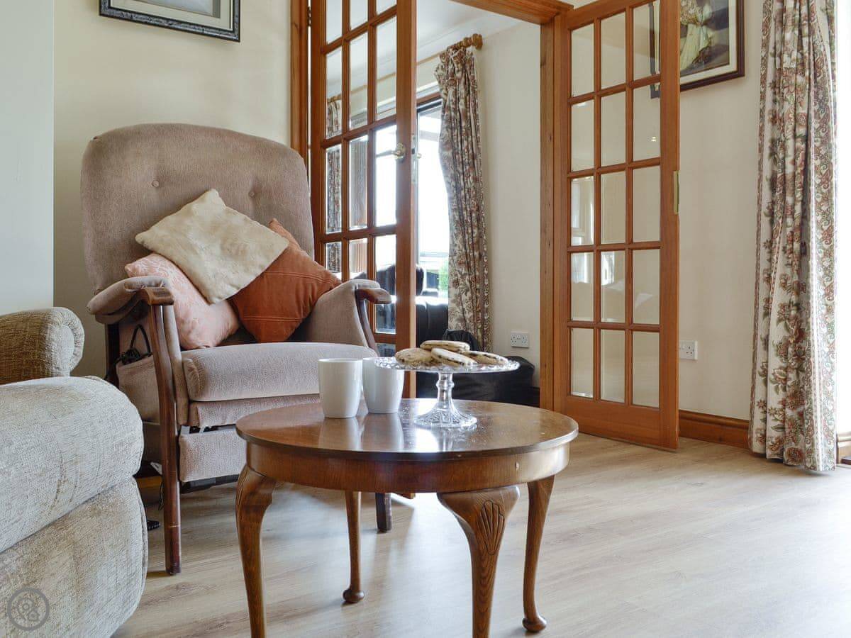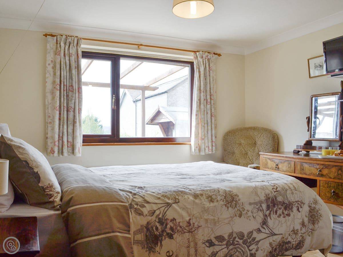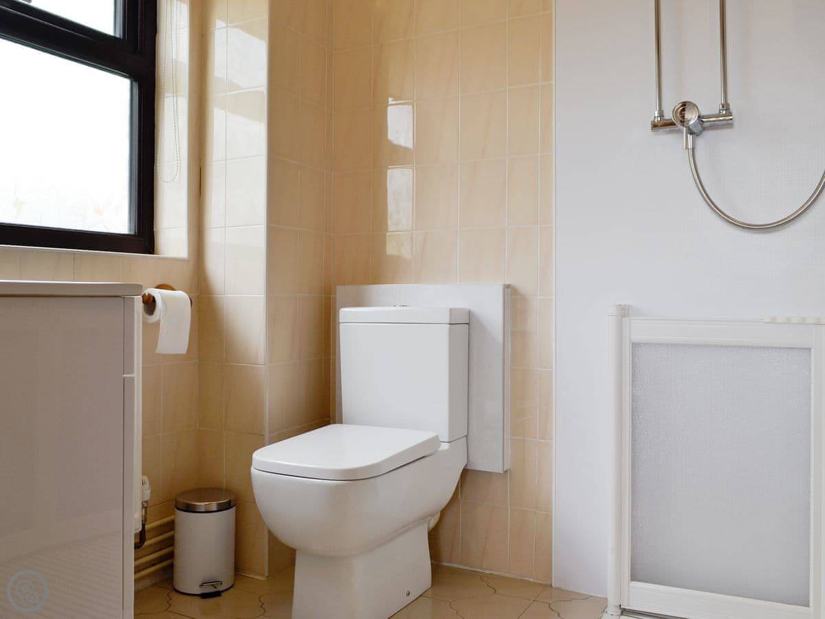 It sleeps eight. Four bedrooms, two bathrooms. One bathroom is a wet room which is wheelchair accessible. There's parking on the drive.