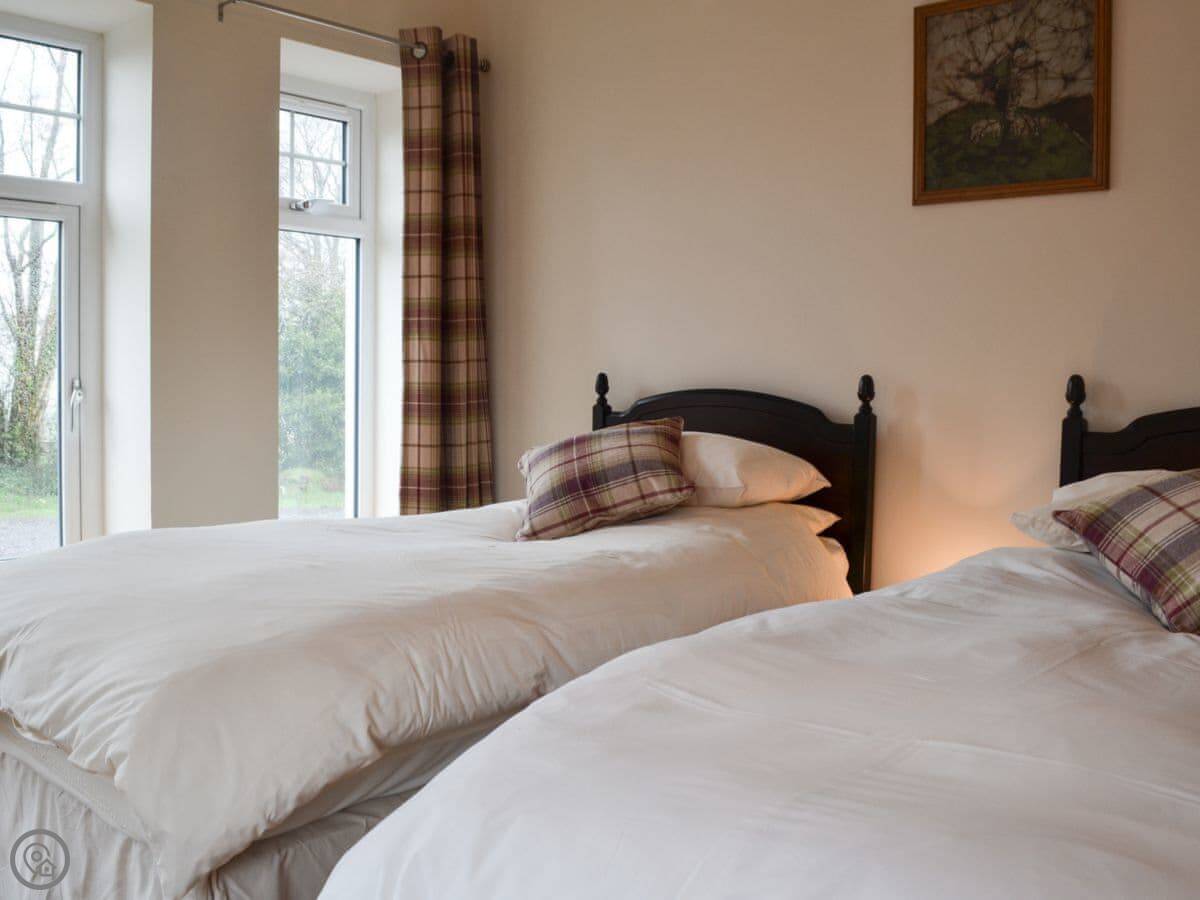 It sleeps four. Two bedrooms, one bathroom. It's a 5 Star place, which means it's comfortable and has everything you need. It's open plan downstairs. The views are the main thing. You look straight up the Nantlle Valley towards Snowdon, and out over Caernarfon Bay to Anglesey.