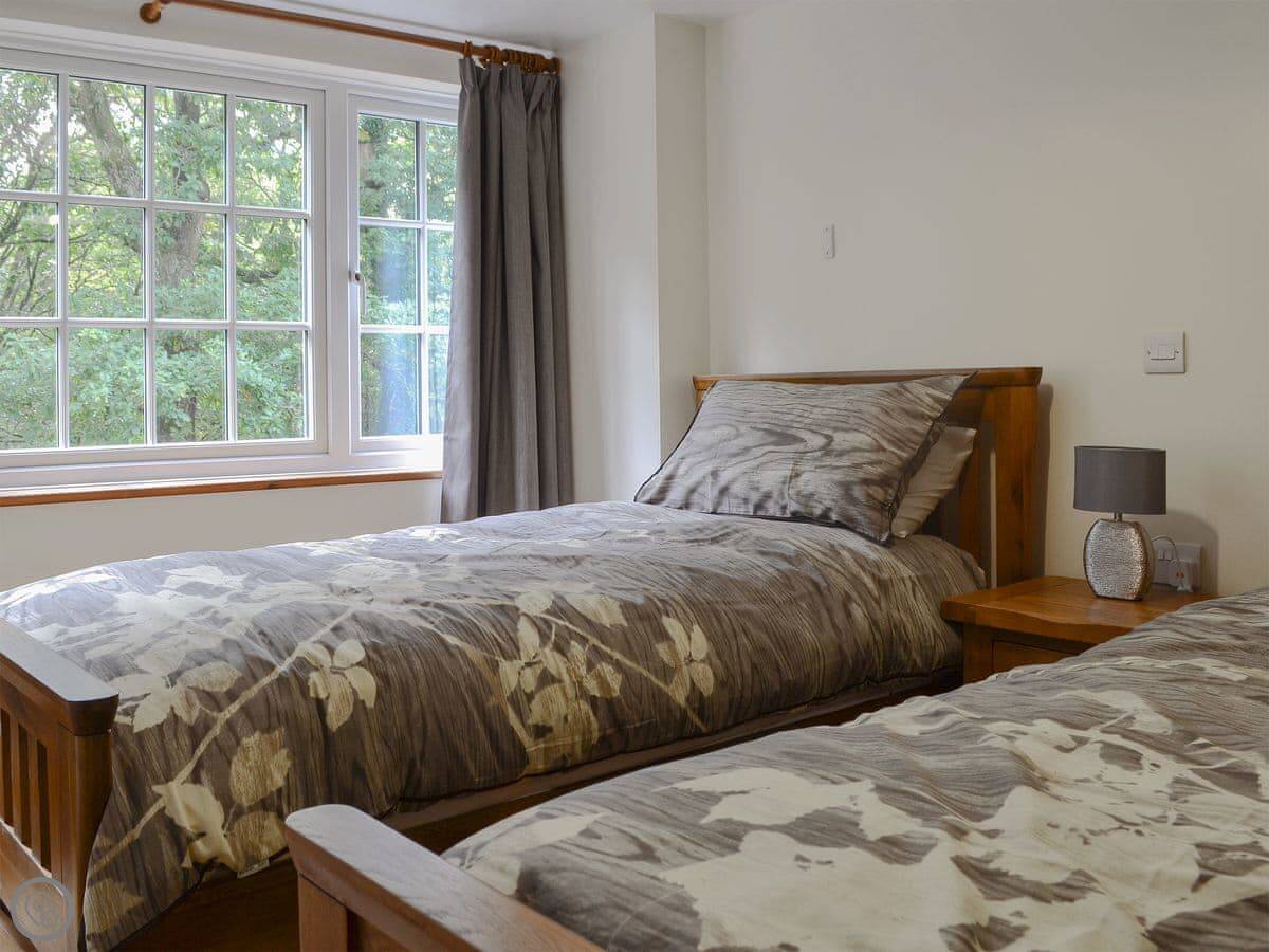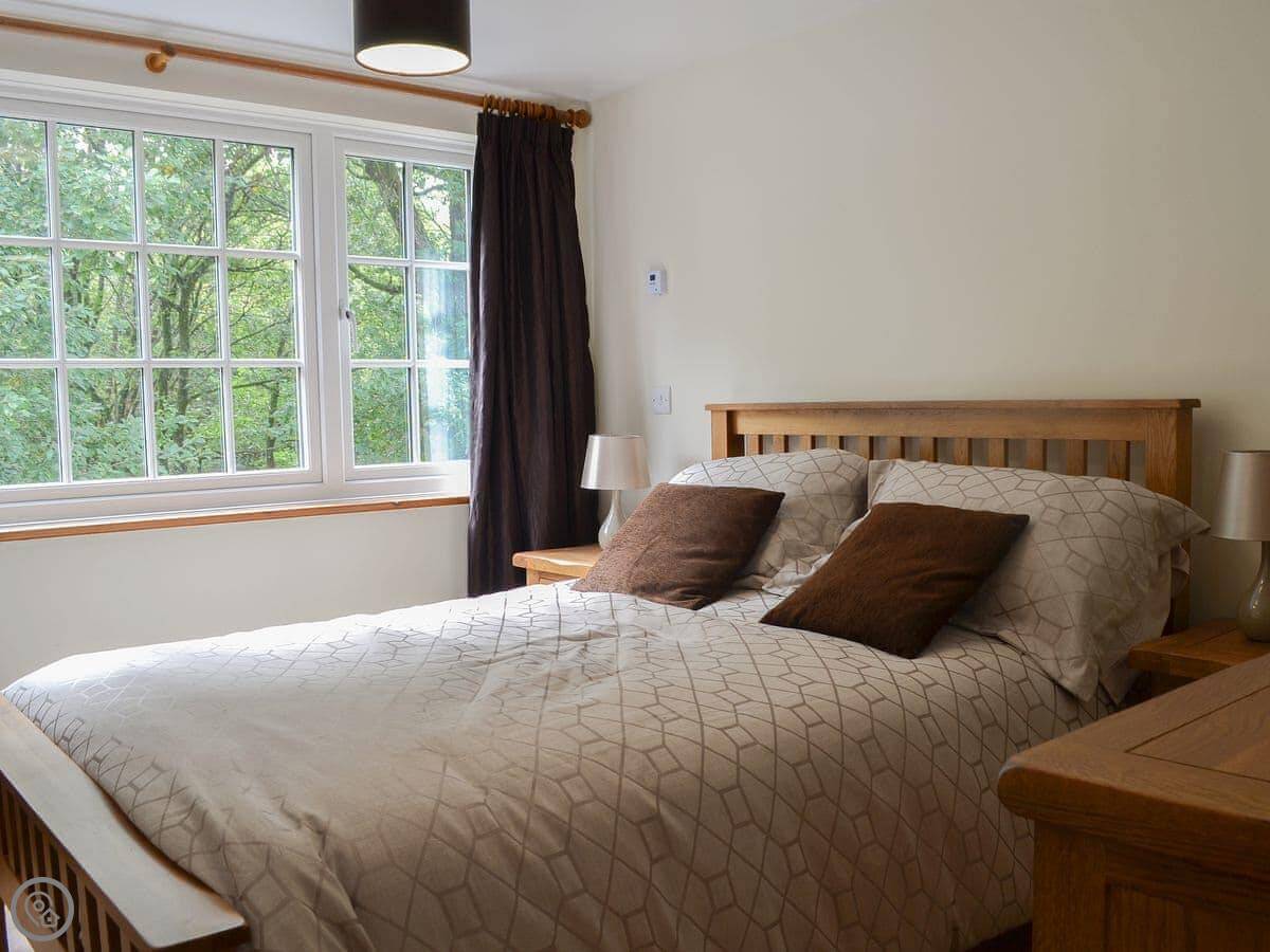 It looks out over woodland and the River Llyfni. It's very quiet here. You get your own parking space.