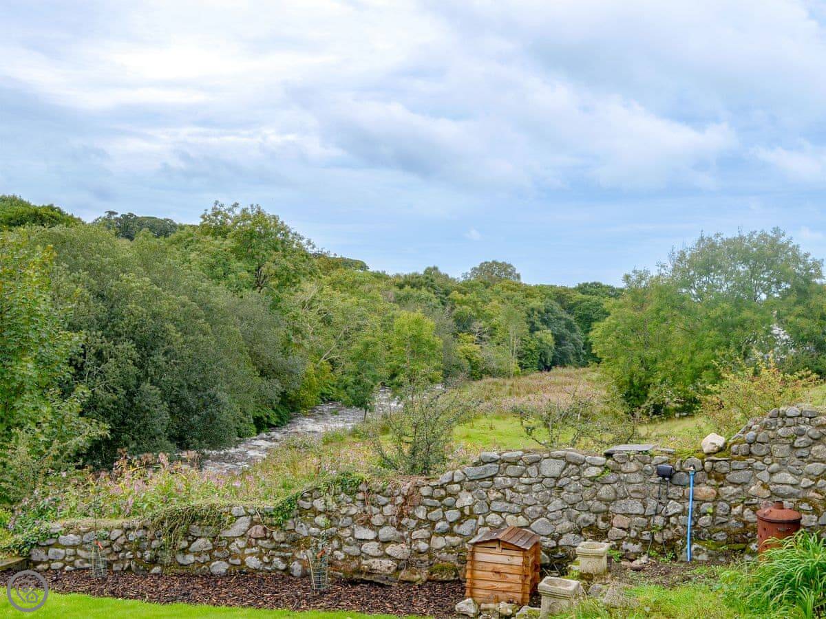 You look out over the River Llyfni from the garden. It's quiet, with woods and fields all around. The garden is yours to use.