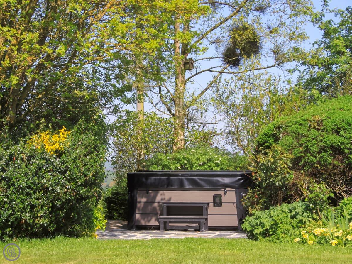 The garden is large and quiet. There's a patio with seating, a BBQ firepit, two lawns, and an orchard. The hot tub is under some trees. Part of the Severn Way walk goes through the field next door.