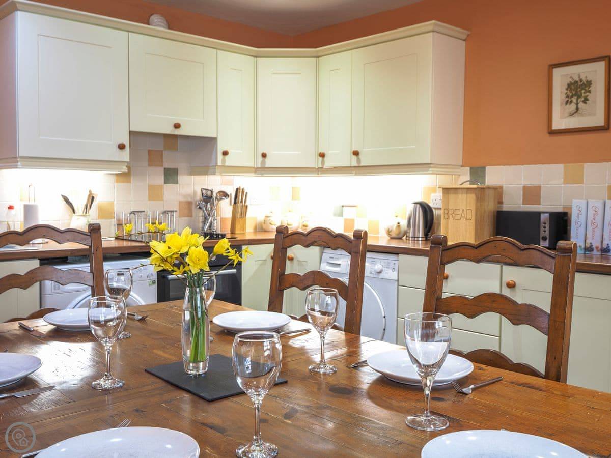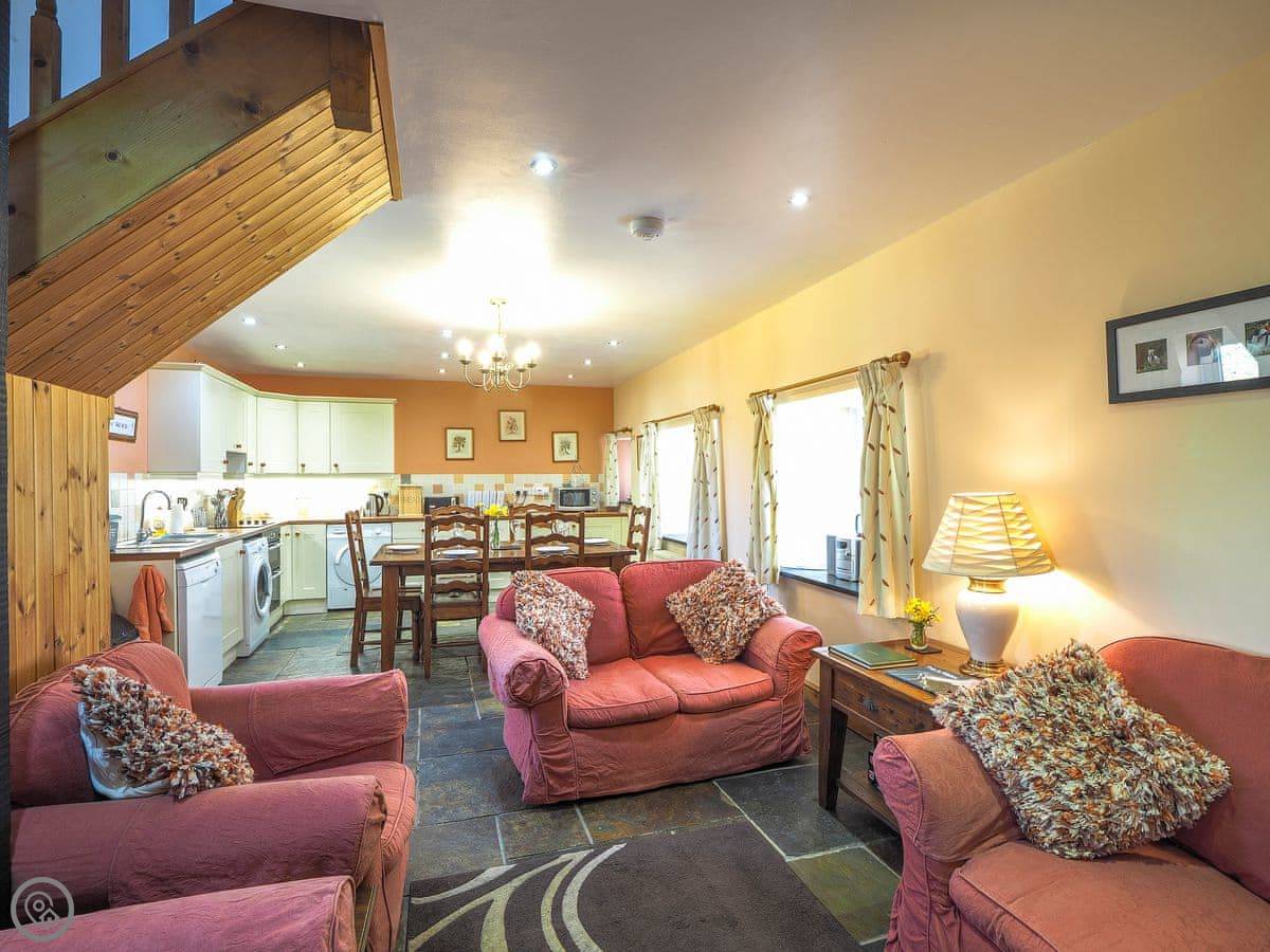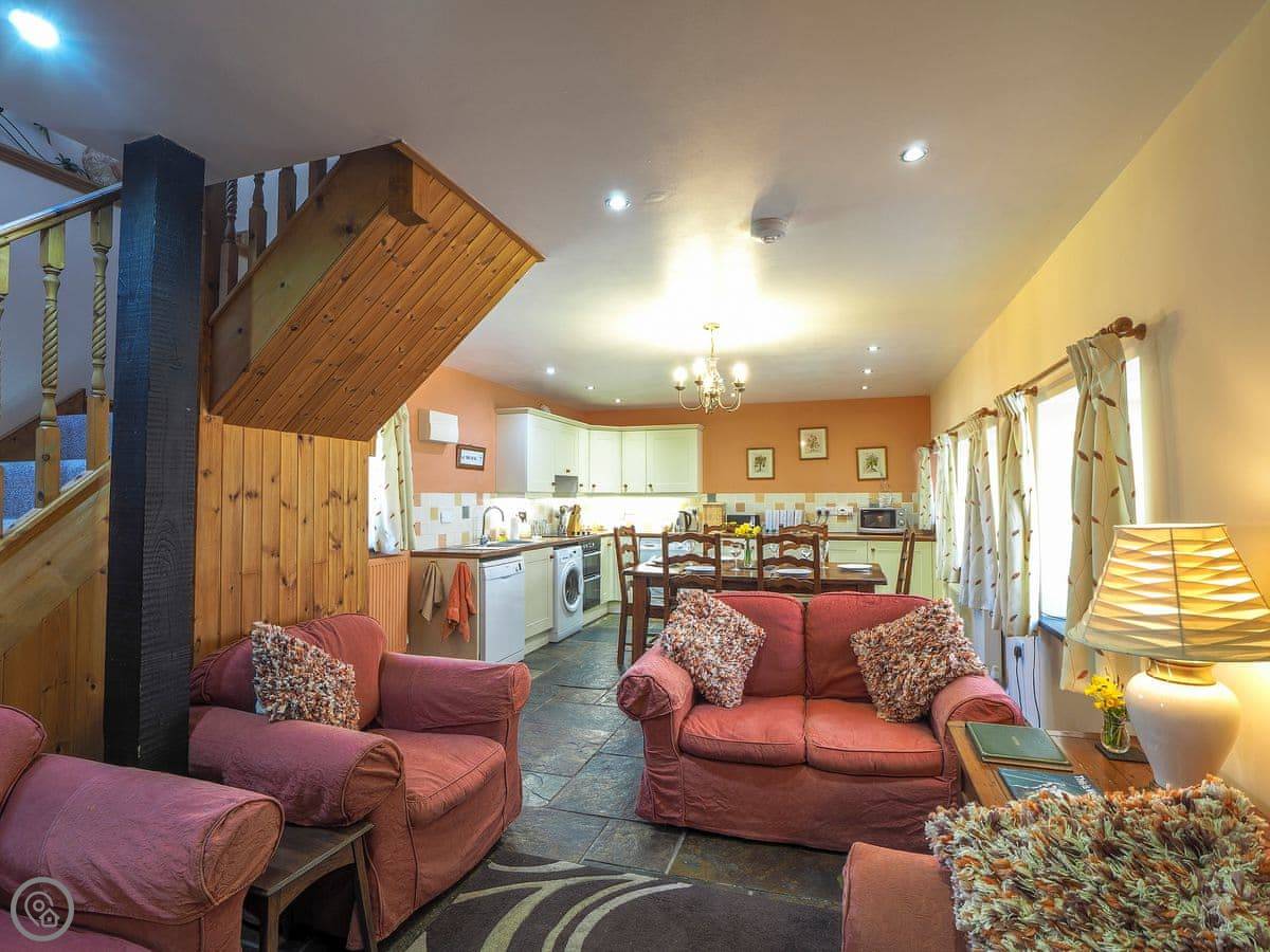 The cottage offers a spacious open plan living space with superb slate flooring running through the kitchen and living room. Enjoy cooking that special meal in the large kitchen complete with a farmhouse table ideal for all the family and friends to get together. The cottage boasts two living rooms, so your children can relax on the first floor whilst you have your feet up downstairs with a glass of wine. Y Beudy has been lovingly furnished throughout and each spacious first floor bedroom offers the bonus of en-suite facilities. On an evening you can enjoy dining al fresco on your patio with picture postcard valley views.