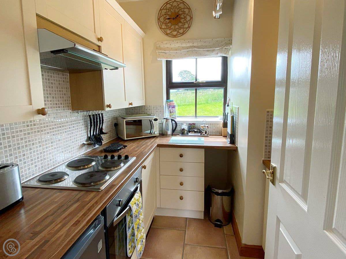 The property is set in an enclosed garden with panoramic views over green fields and wild fells. In the paddock next door to the cottage, there are five very friendly Alpacas. The area remains unspoiled by large traffic queues or intrusive tourism. The town has a beautiful cobbled street with public houses, mini markets, petrol stations, butchers and bakers.