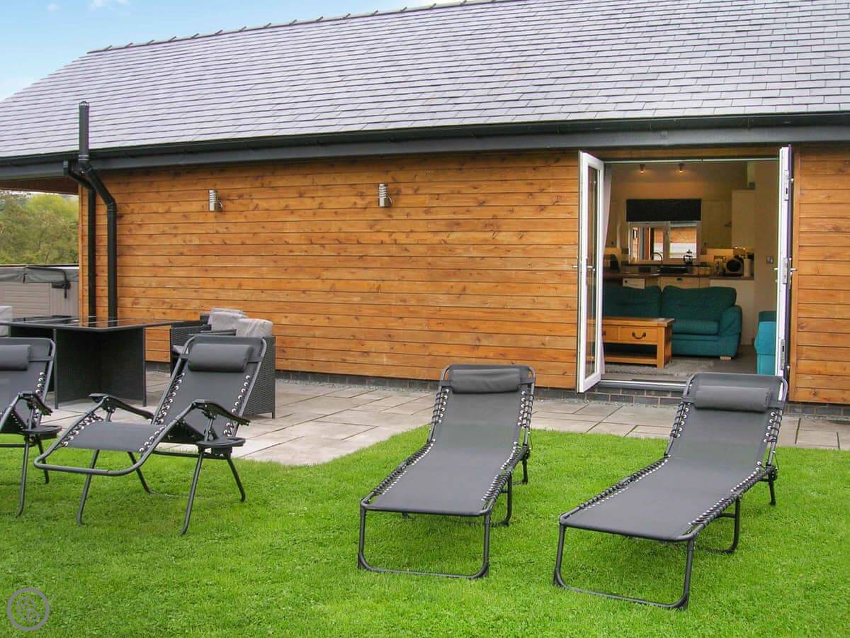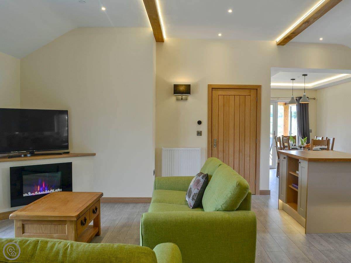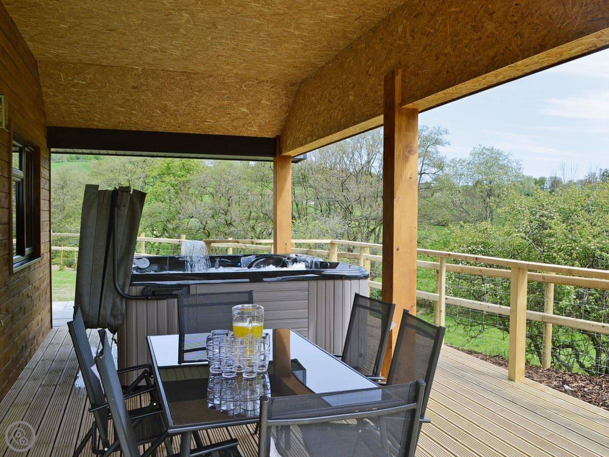 The main living area is open plan. There's a wood burner for cooler evenings. Afterwards, you can use the hot tub on the patio. It's private, but not totally hidden from the farm lane.