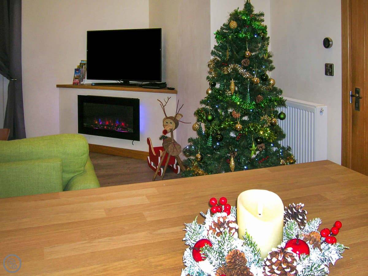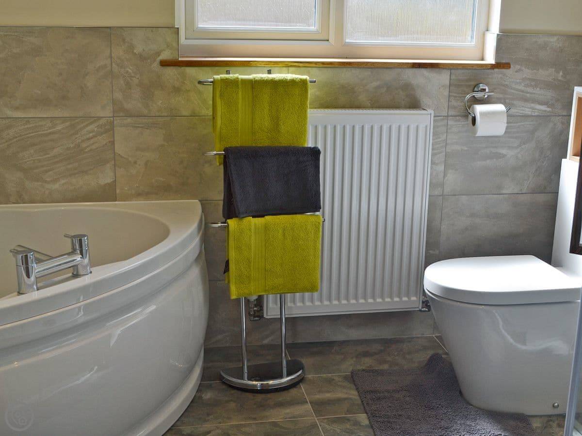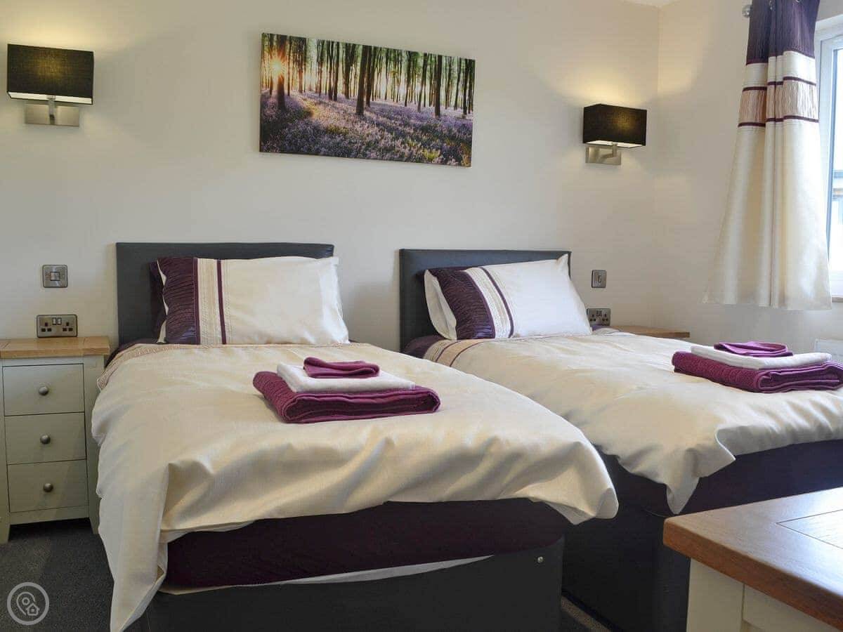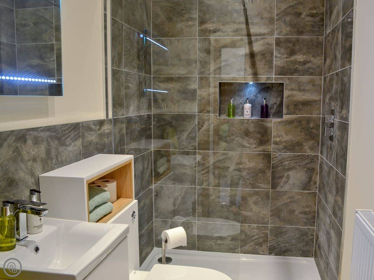 It sleeps six. There are three bedrooms and two bathrooms. One bathroom is on the ground floor. It's got a 5 Star rating, which means it's well-equipped and finished to a good standard. Everything is fairly new.