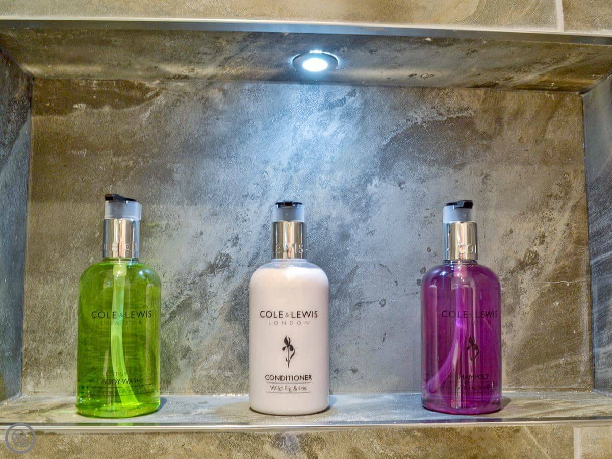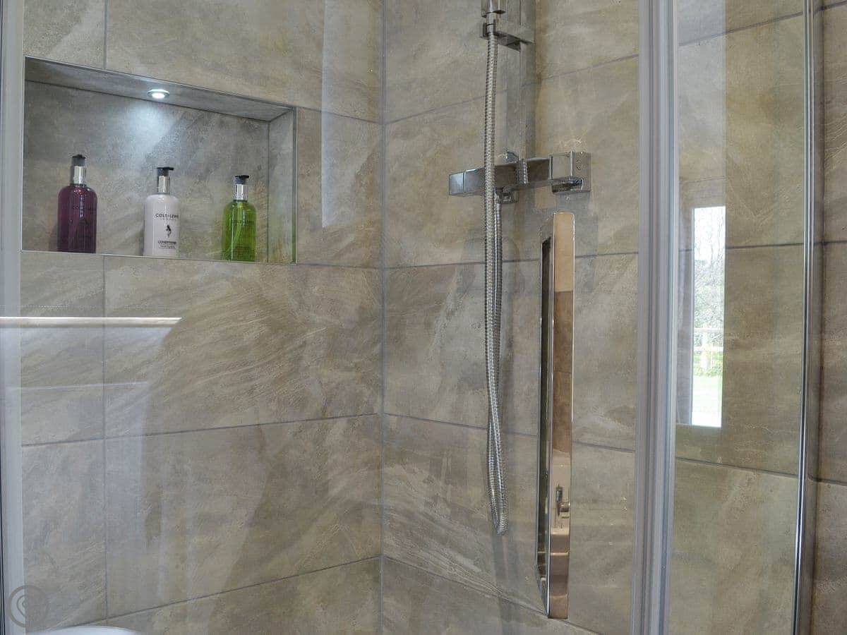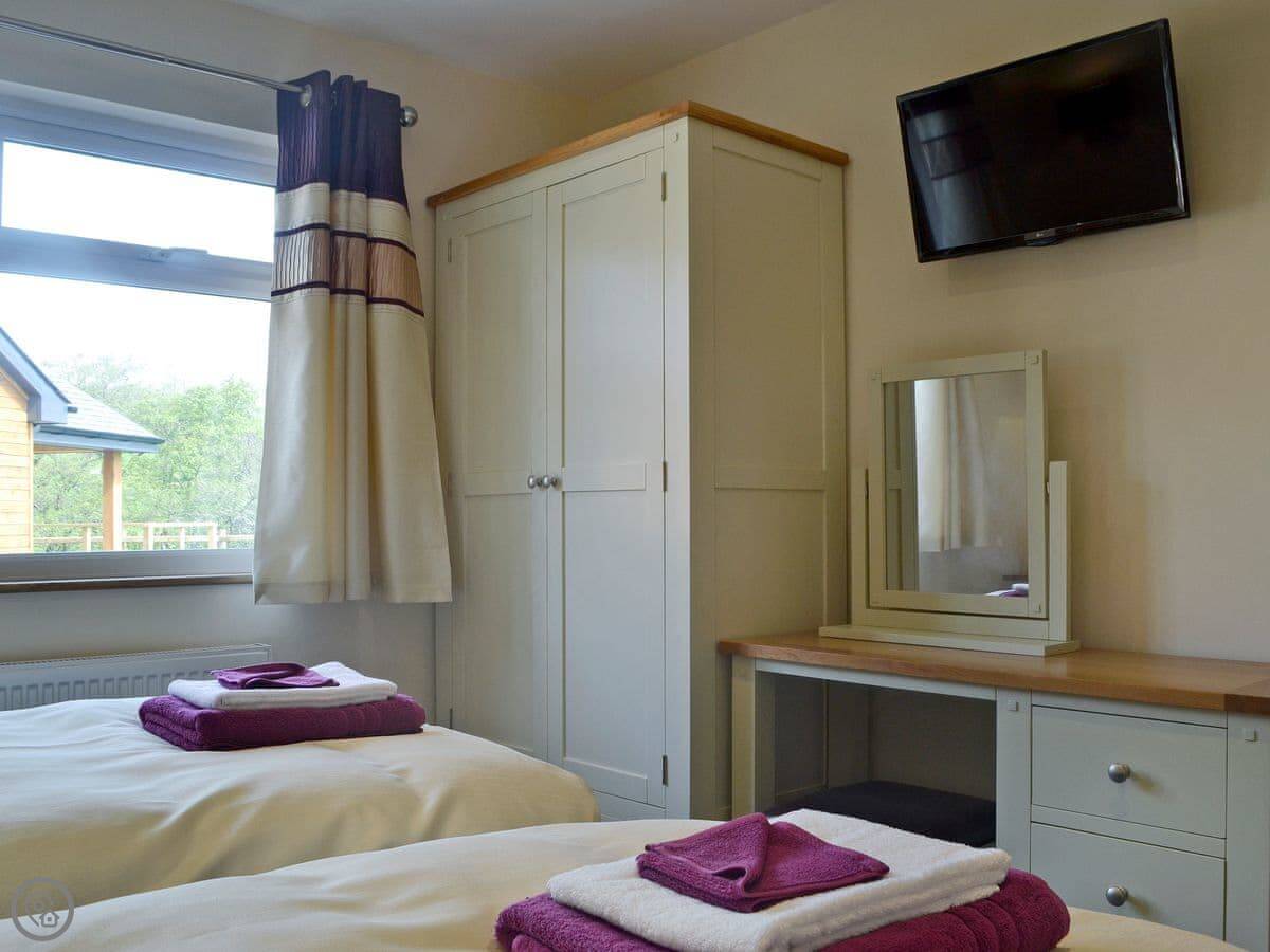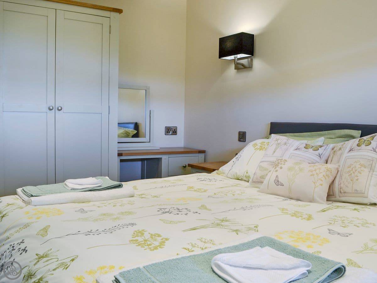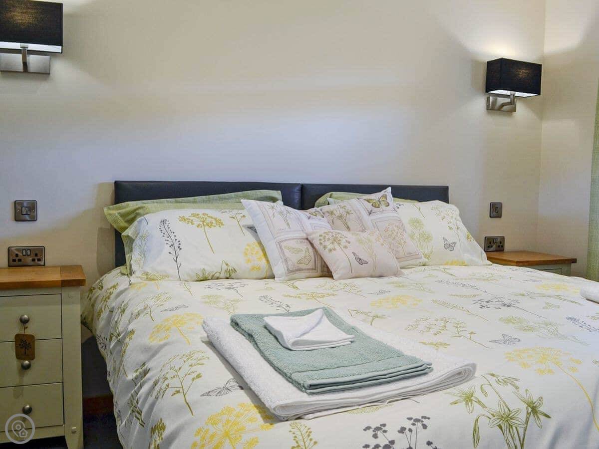 It sleeps six. There are three bedrooms and two bathrooms. One bathroom is on the ground floor. It's got a 5 Star rating, which means it's well-equipped and finished to a good standard. Everything is fairly new.
