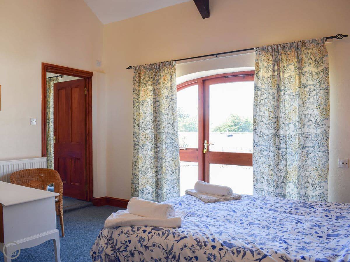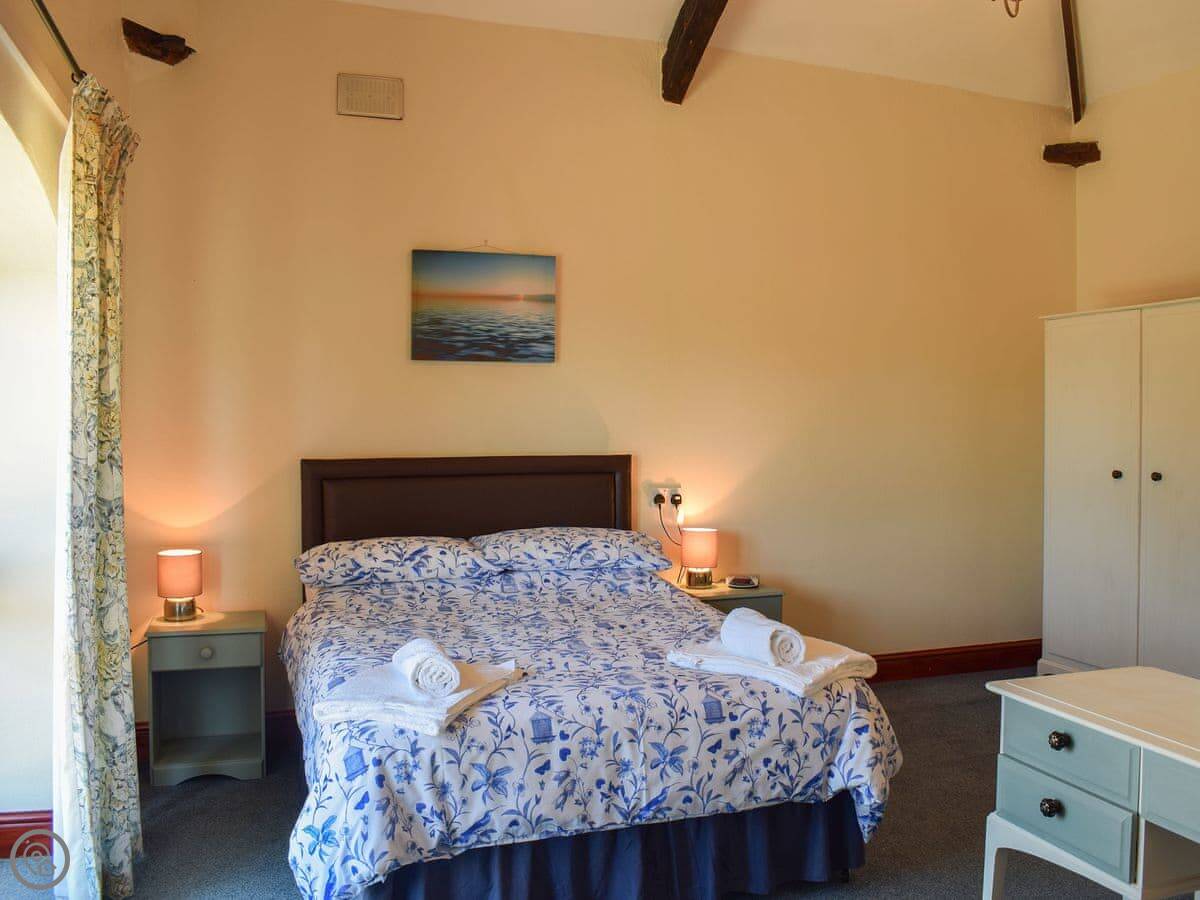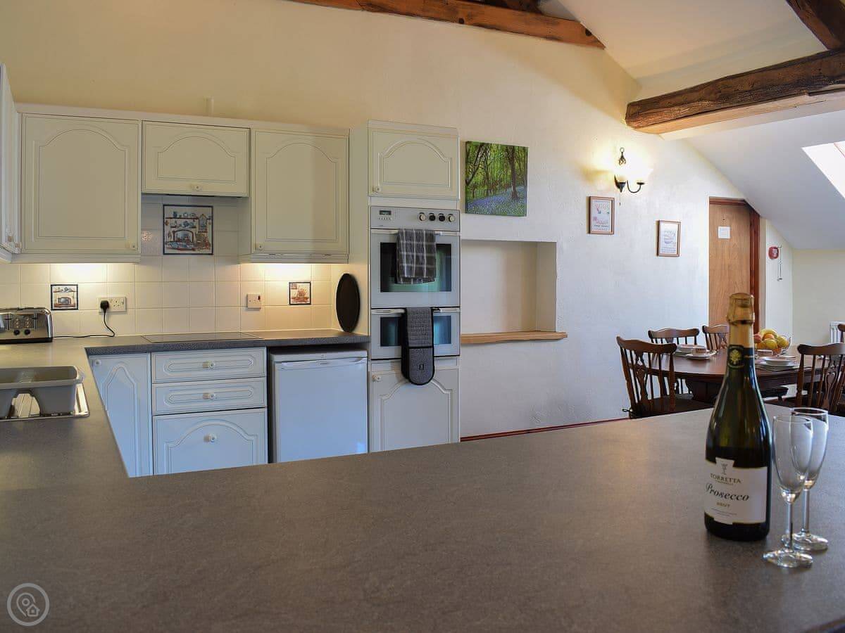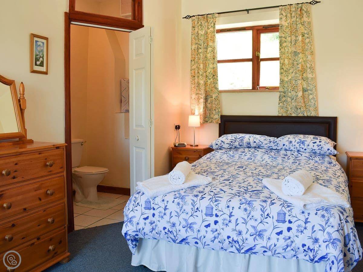 The beauty of this barn is that it is all on the ground floor and there are three bedrooms and three bathrooms! Both of the double rooms boast en-suites with shower cubicles, the second double bedroom is accessed via the first. However, if you prefer privacy the interconnecting bedroom door can be locked as each room has its own private external access leading directly onto the garden and parking area. There’s a further single room and a bathroom.