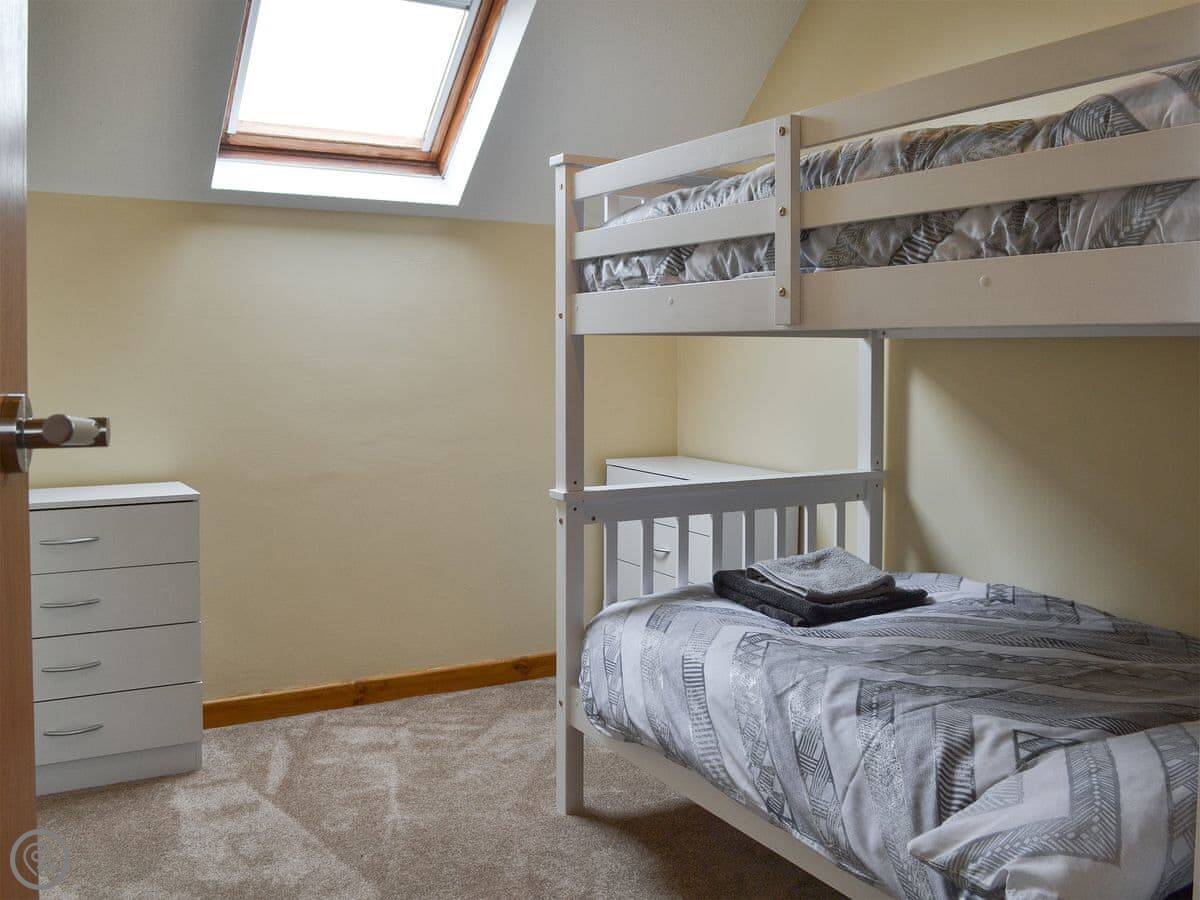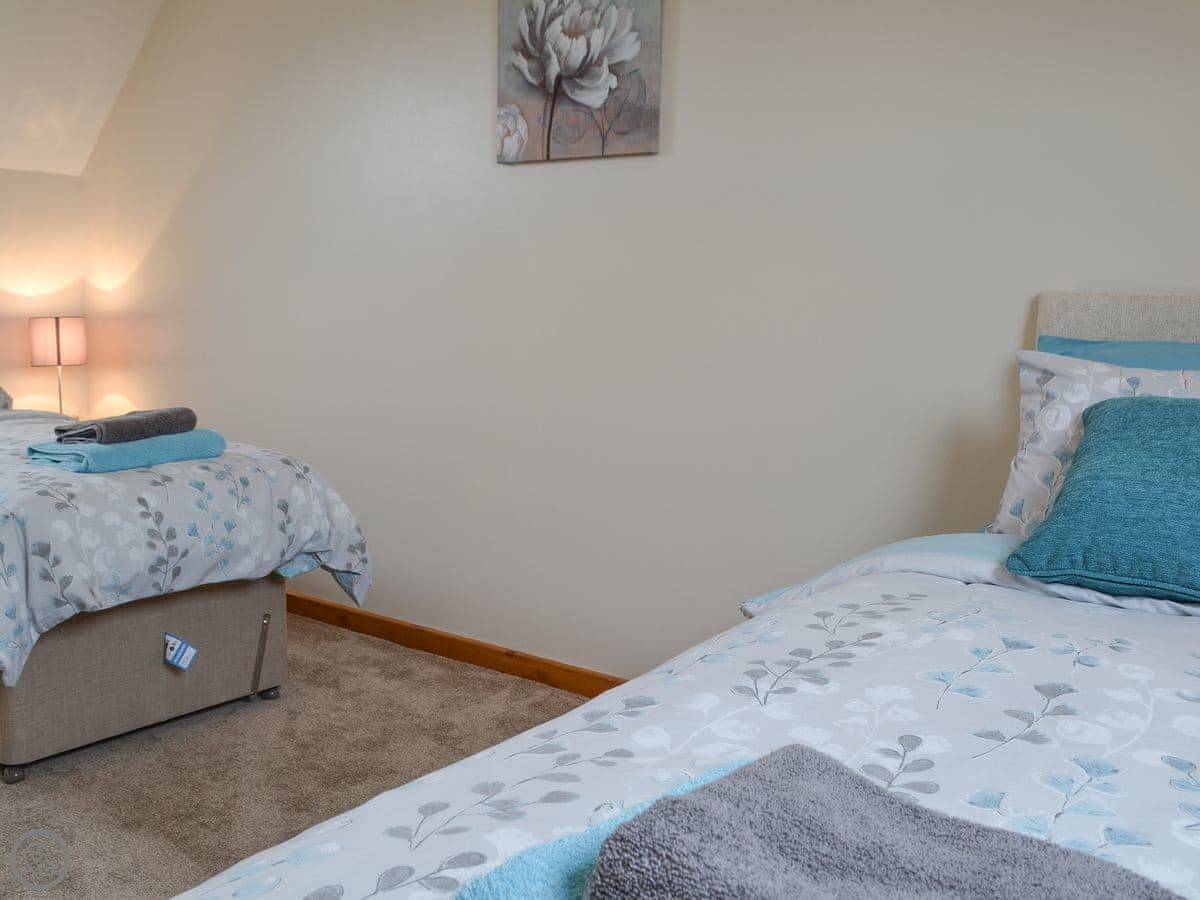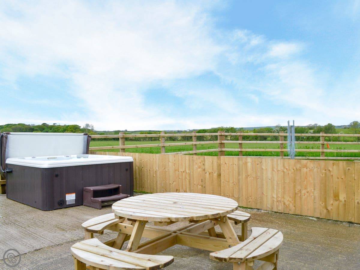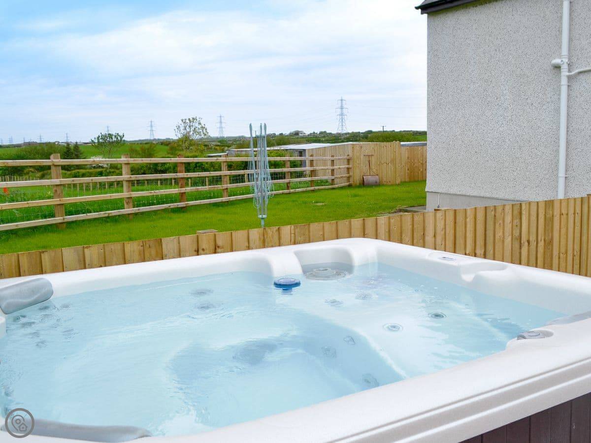 It sleeps six. Three bedrooms, one bathroom. It's got a 4 Star rating, which means it's comfortable and well equipped. There's a log burner for colder evenings, and a hot tub in the garden.