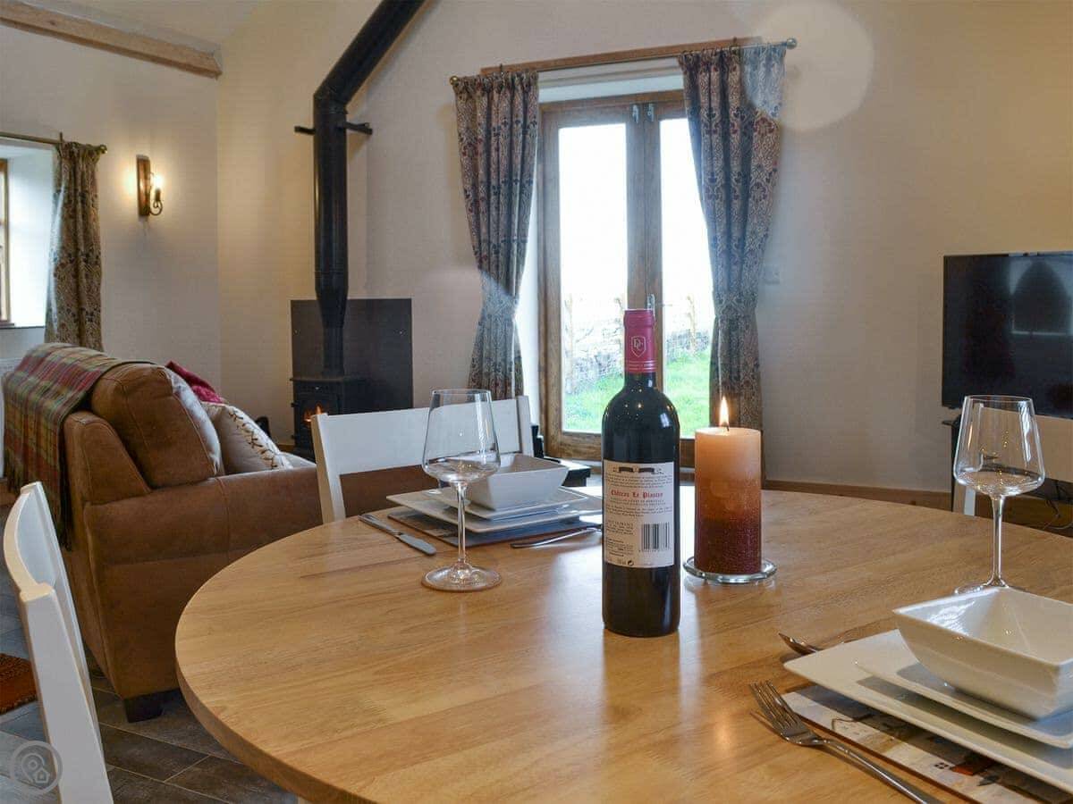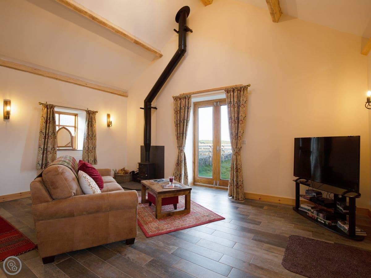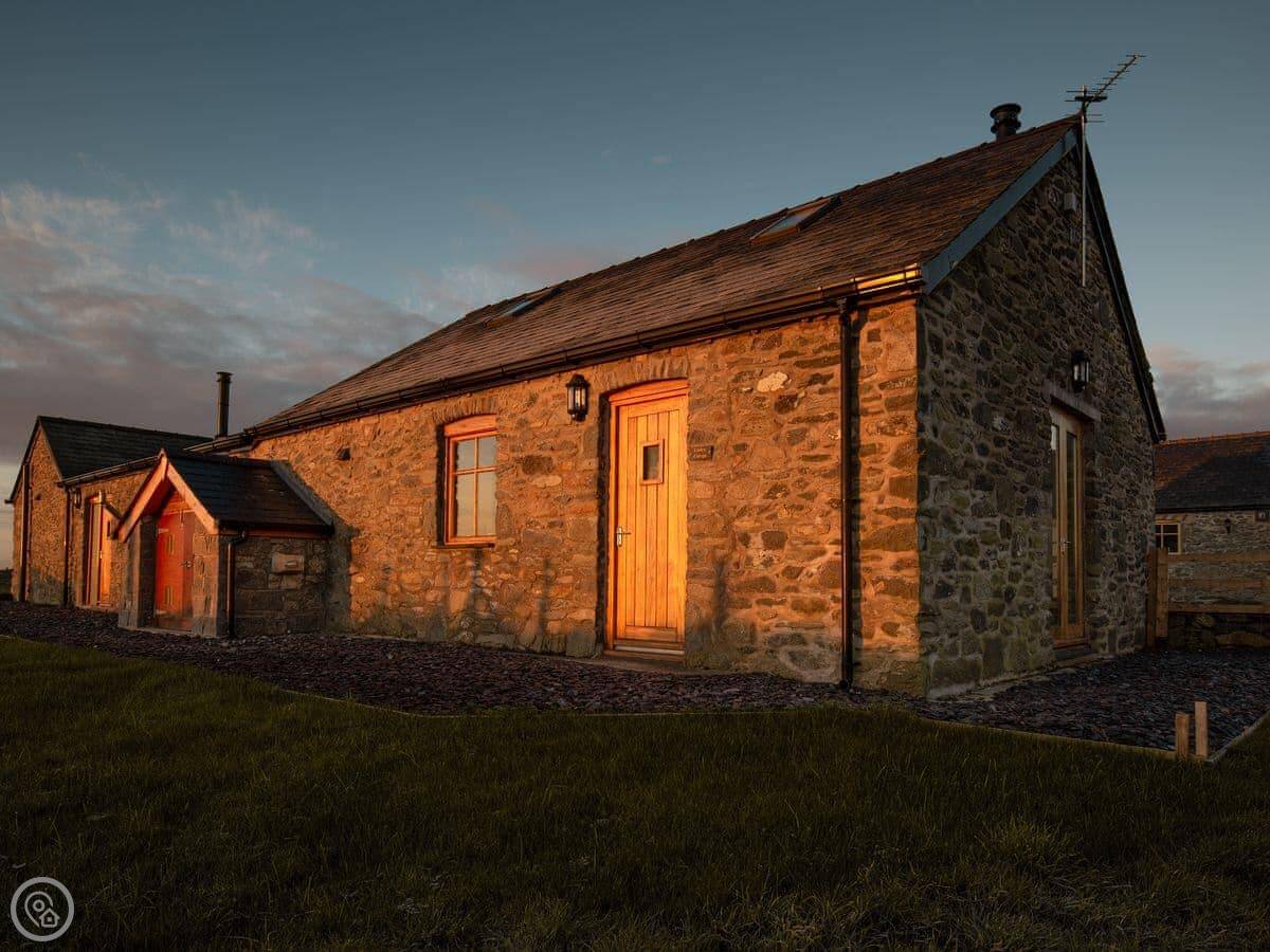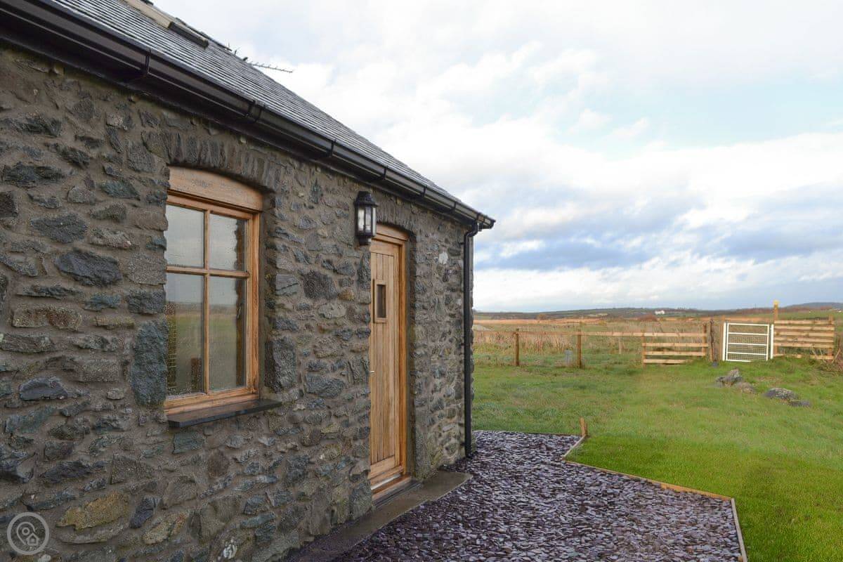 Curlew is in Llanfihangel yn Nhowyn, on Anglesey. It's a converted stone building on a farm. You get your own garden. The views are over fields and a lake.