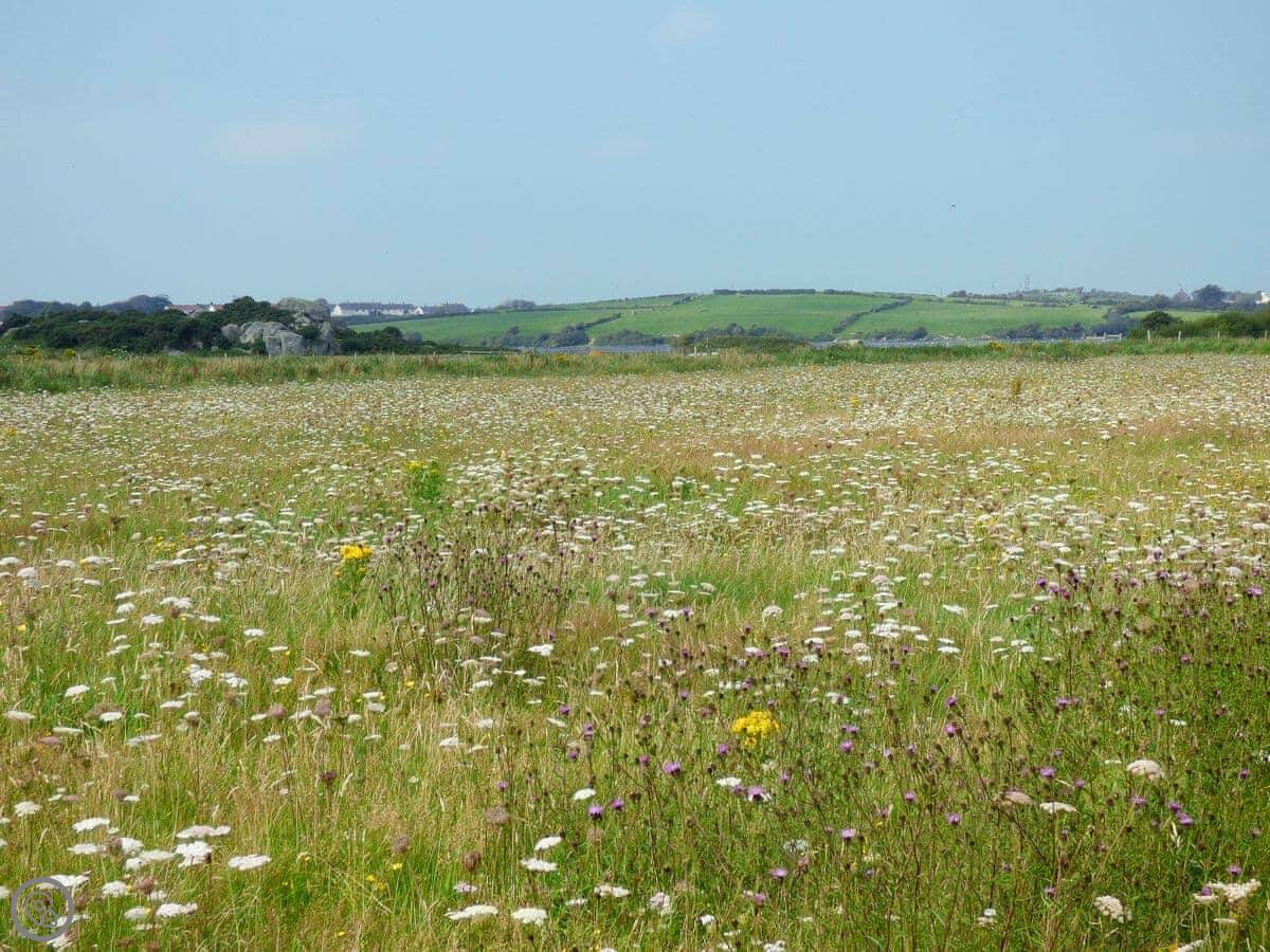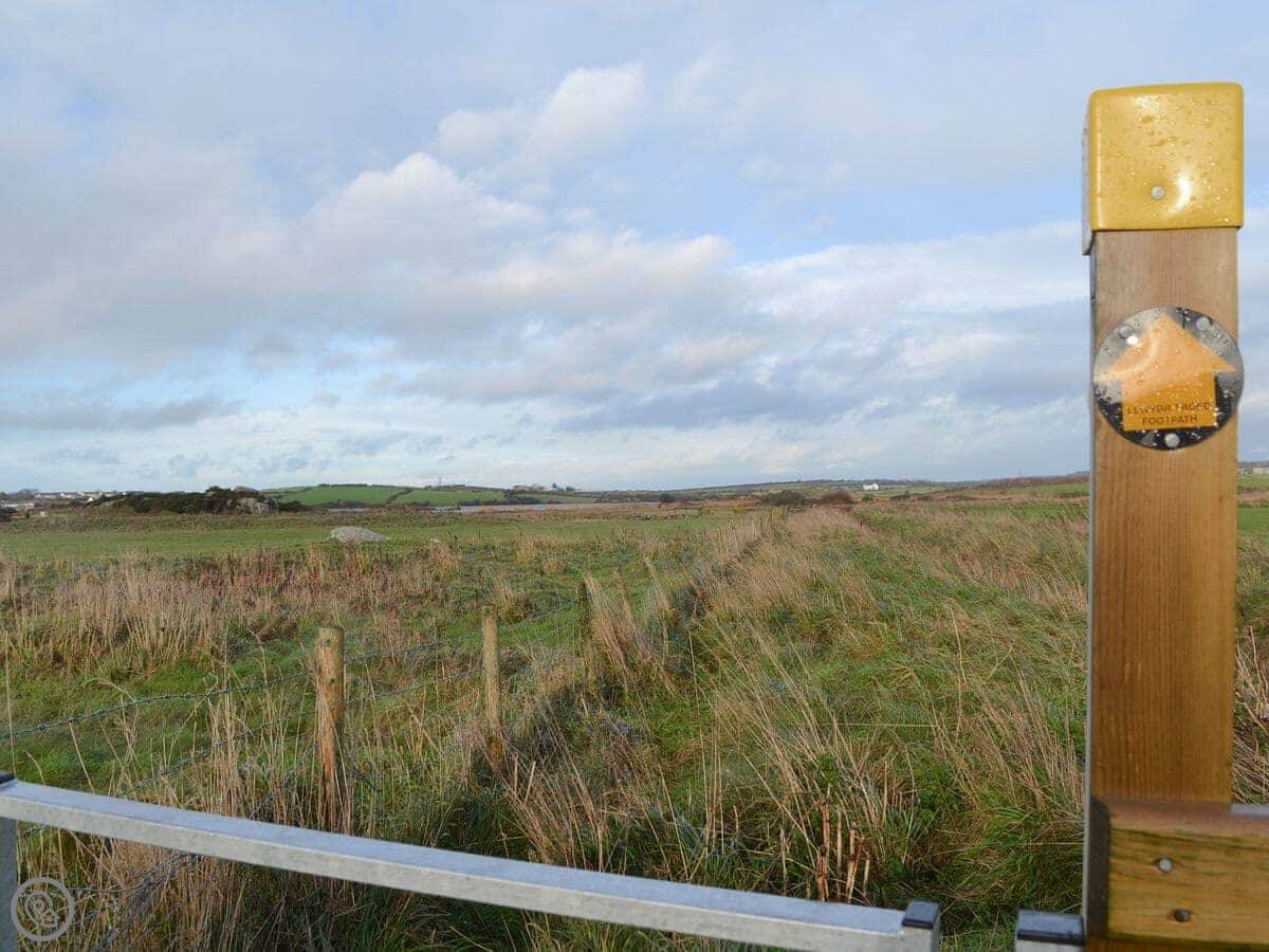 You're right next to the RSPB Valley Wetlands. There's a footpath outside the gate that goes north into the reserve, or south to Rhosneigr beach in about forty minutes on foot. By car, Rhosneigr and Trearddur Bay are about fifteen minutes away.