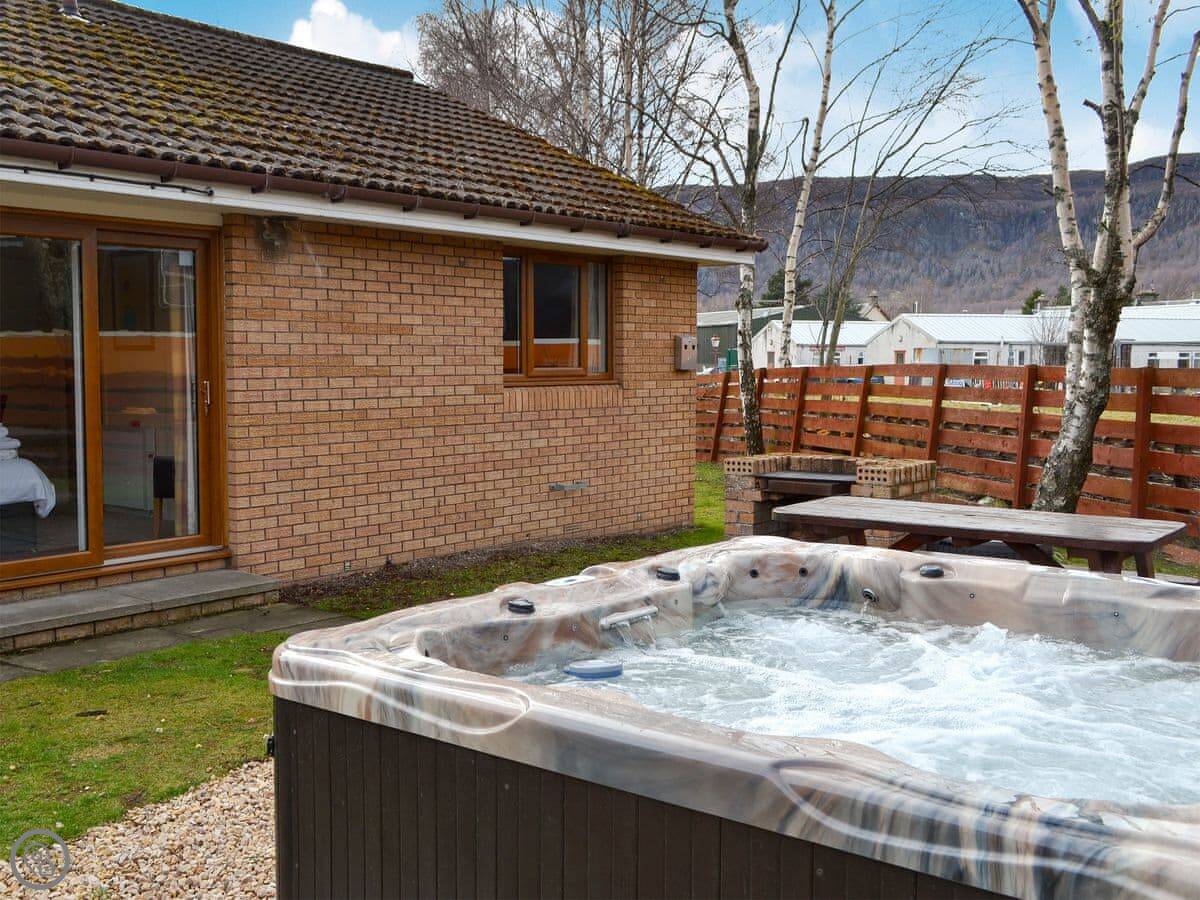 The main thing in the garden is the hot tub. It's a proper one, seats six, and it's serviced regularly. It's lit for evening use. It's private, just for the house.
