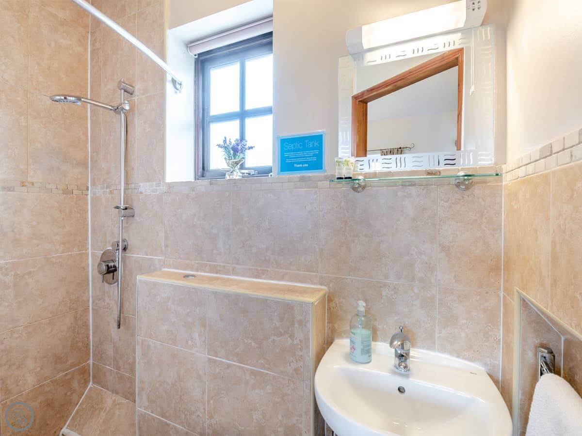 It's got a 4 Star rating. It's comfortable and clean. The layout is all open plan downstairs, so the living area and kitchen are together. Everything's on the ground floor, no stairs to worry about. There's a shower room, not a bath.