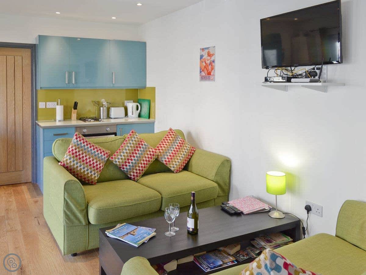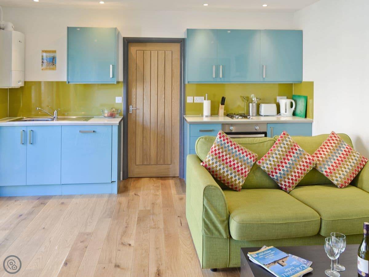 It sleeps four, in two bedrooms. Both bedrooms have their own bathroom. The Cornwall Tourist Board gave it a 4 Star rating. It's comfortable.