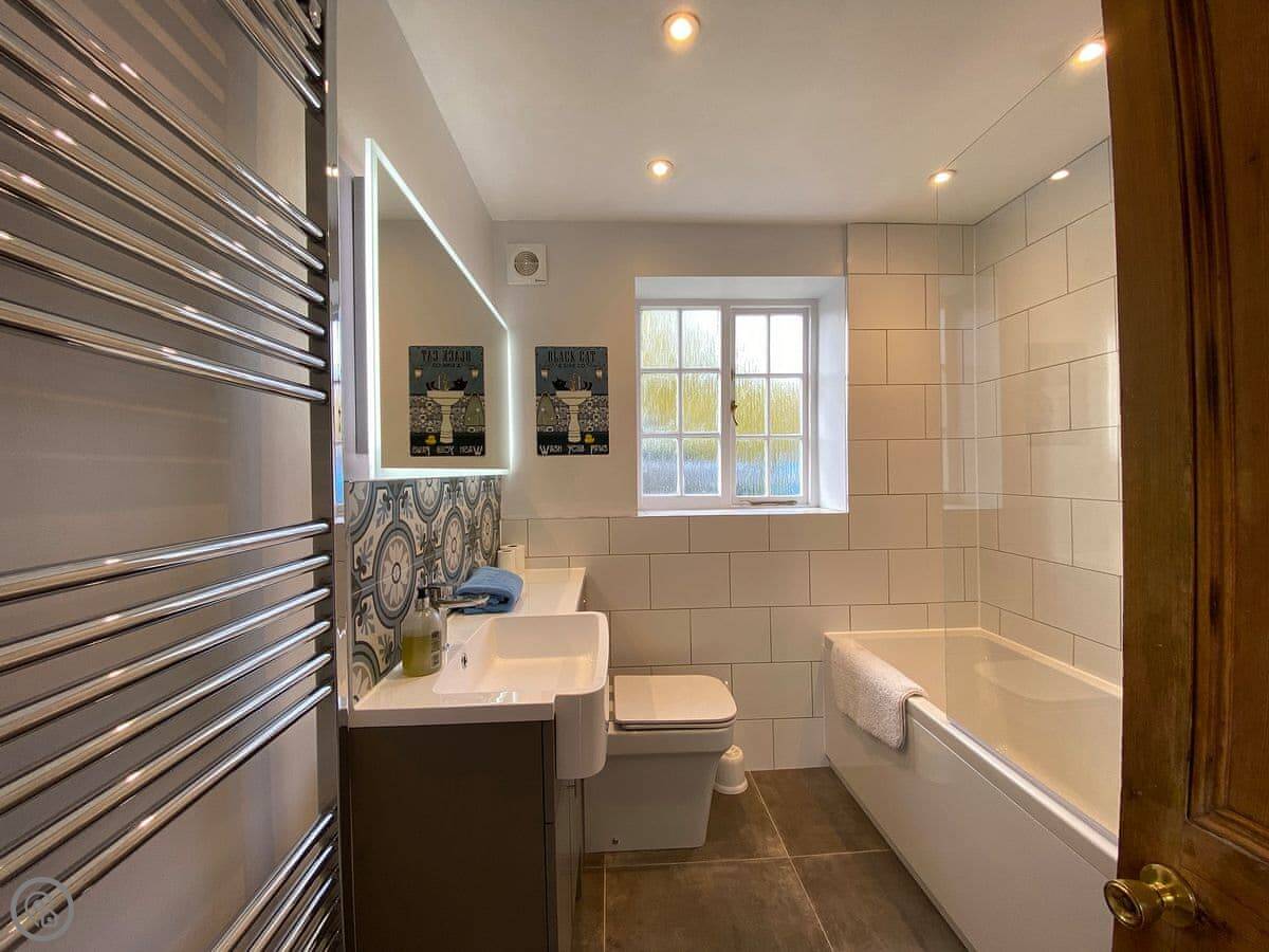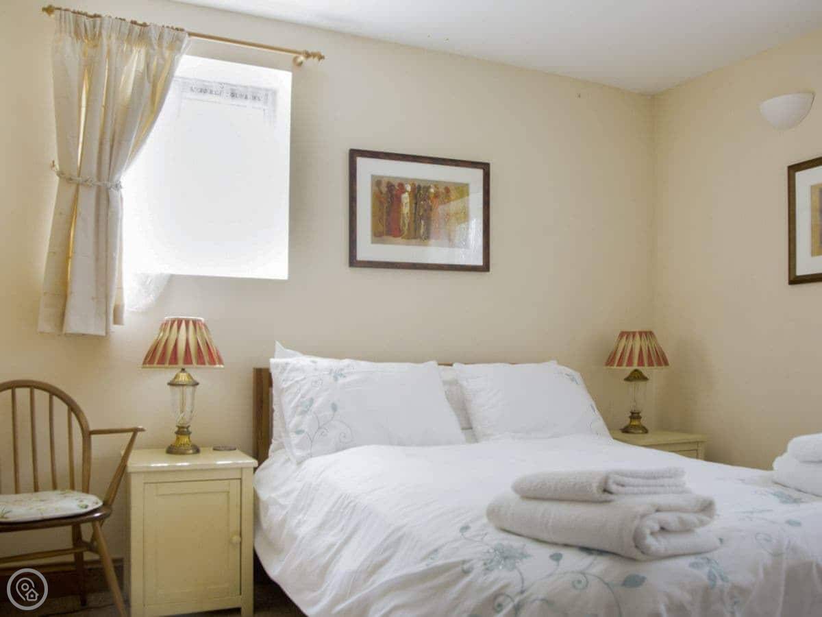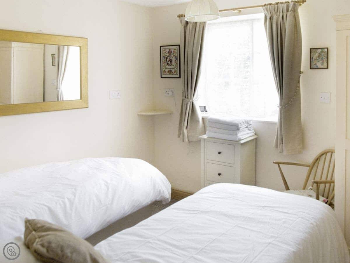 It sleeps four. Two bedrooms, one bathroom. It's a 3 Star place, which means it's clean and comfortable but don't expect anything luxurious. There's an open fire for winter and a patio you can sit on in summer. The garden is private.