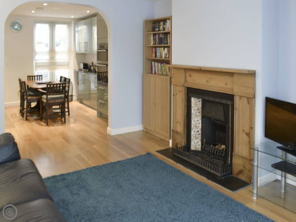 You're right in the town. It's a two-minute walk to the beach, the shops, and the pub. The pub is about 100 yards away and does food. It's quiet at night though, which is nice.