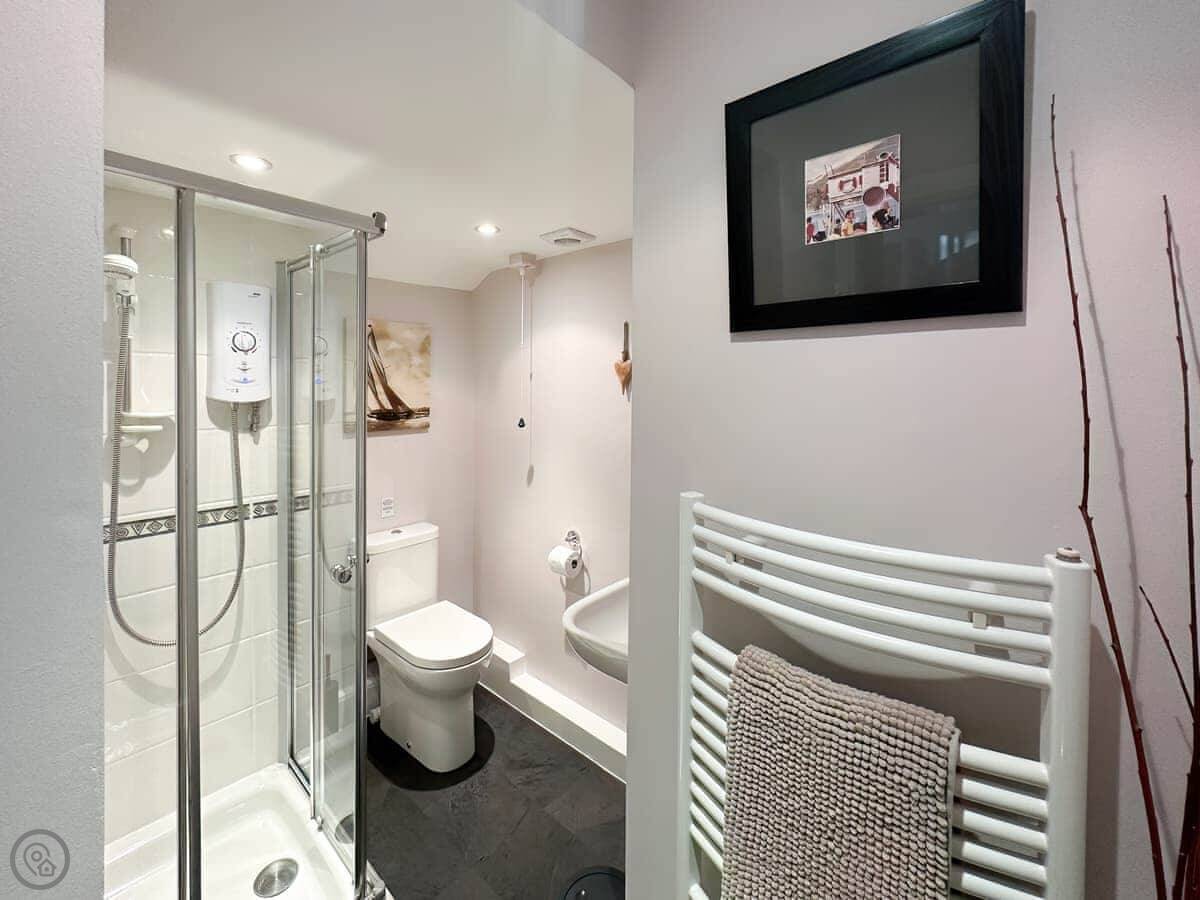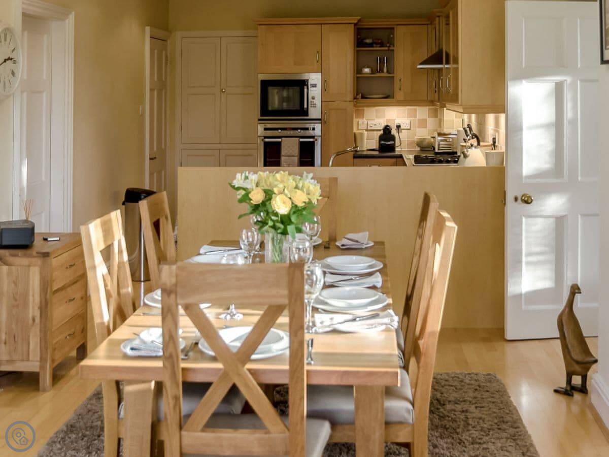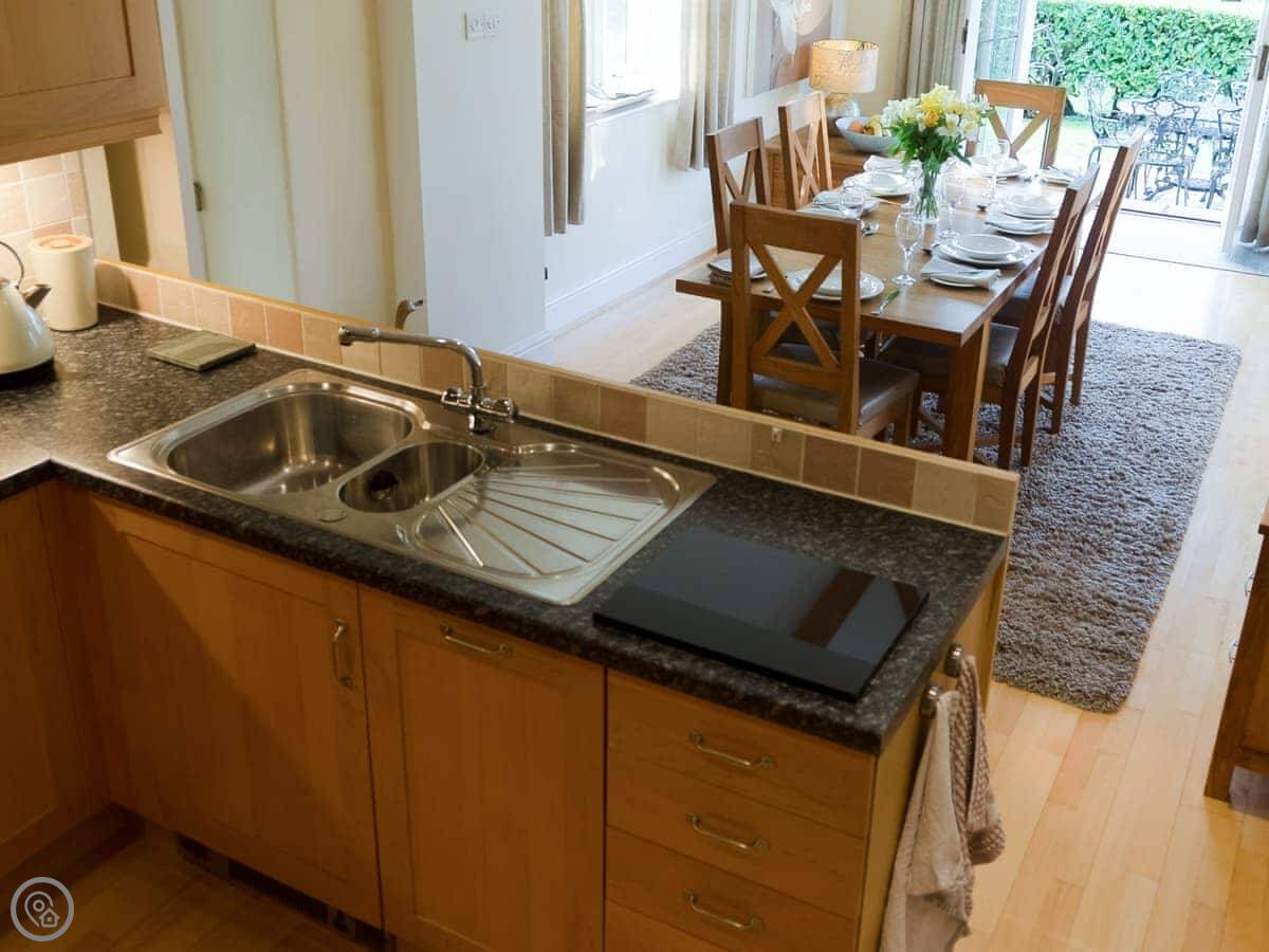 It sleeps four, with three bedrooms and three bathrooms. Each bedroom has its own bathroom, which is handy. It's a 4 Star property, so it's nice. The kitchen is modern and has a dishwasher. There's a washing machine too. The garden is enclosed.