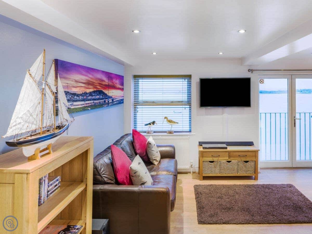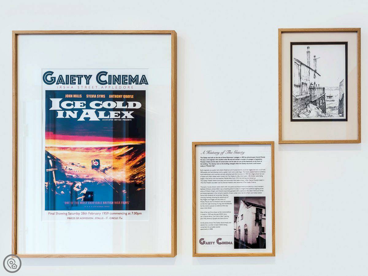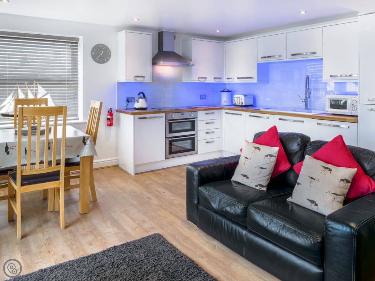 This stunning, first-floor, waterfront apartment is set in the heart of the pretty fishing village of Appledore. The shoreline is the perfect choice for a family coastal holiday or for couples looking for a relaxing escape at any time of year. Beautifully presented, this apartment is part of a converted Victorian cinema called ’The Gaiety’, located in historic Irsha Street. The cinema first opened its doors in the bygone era of the silent black and white films, around 1919-1923, and seated around 500 eager, local cinemagoers. Shoreline enjoys spectacular, 180-degree views across the estuary. The spacious open-plan living/dining area, with LED mood lighting, and the master bedroom make the most of these views and are a fantastic spot to enjoy a lazy breakfast whilst taking in the sights of the passing boats.