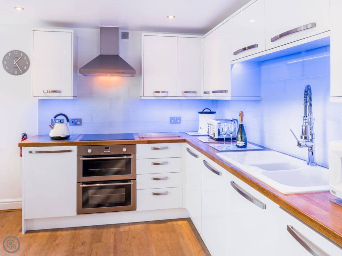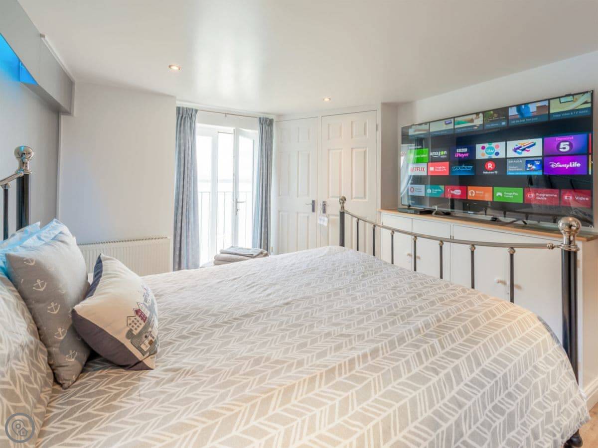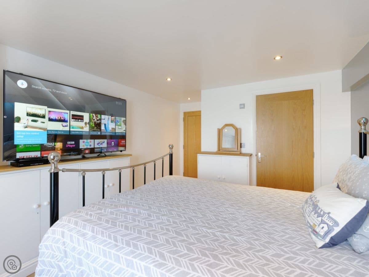 This stunning, first-floor, waterfront apartment is set in the heart of the pretty fishing village of Appledore. The shoreline is the perfect choice for a family coastal holiday or for couples looking for a relaxing escape at any time of year. Beautifully presented, this apartment is part of a converted Victorian cinema called ’The Gaiety’, located in historic Irsha Street. The cinema first opened its doors in the bygone era of the silent black and white films, around 1919-1923, and seated around 500 eager, local cinemagoers. Shoreline enjoys spectacular, 180-degree views across the estuary. The spacious open-plan living/dining area, with LED mood lighting, and the master bedroom make the most of these views and are a fantastic spot to enjoy a lazy breakfast whilst taking in the sights of the passing boats.