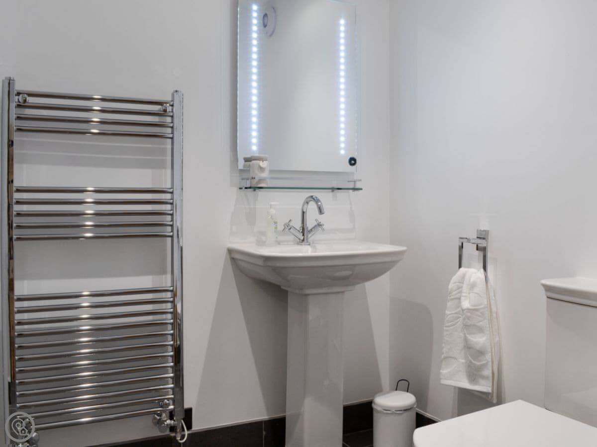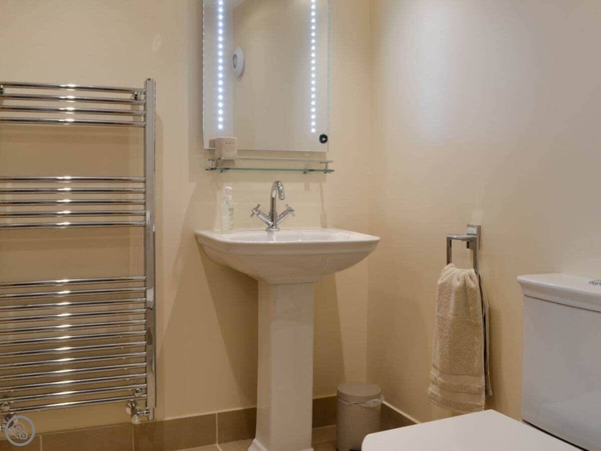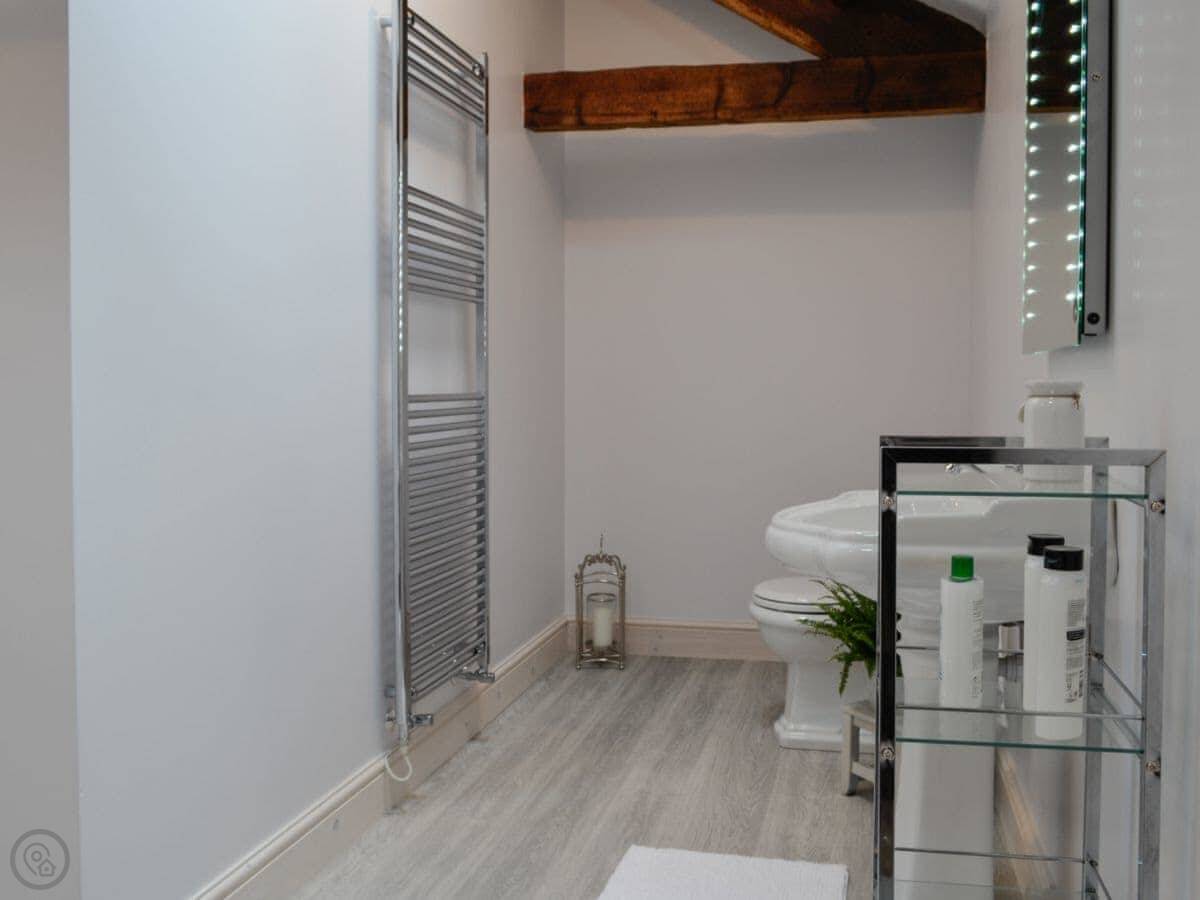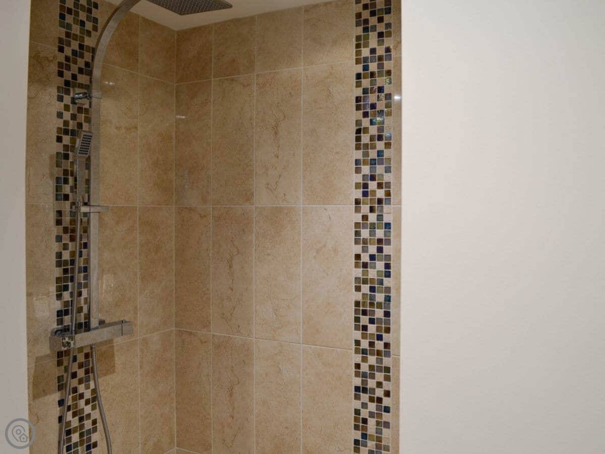 It sleeps eight. Four bedrooms, three bathrooms. The main one is a wet room, and it's on the ground floor, which is useful. It's got a 5 Star rating, so everything is in good order.