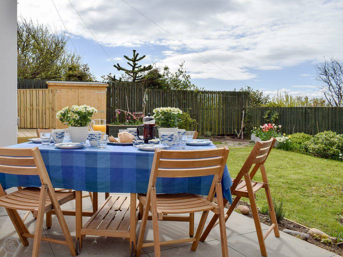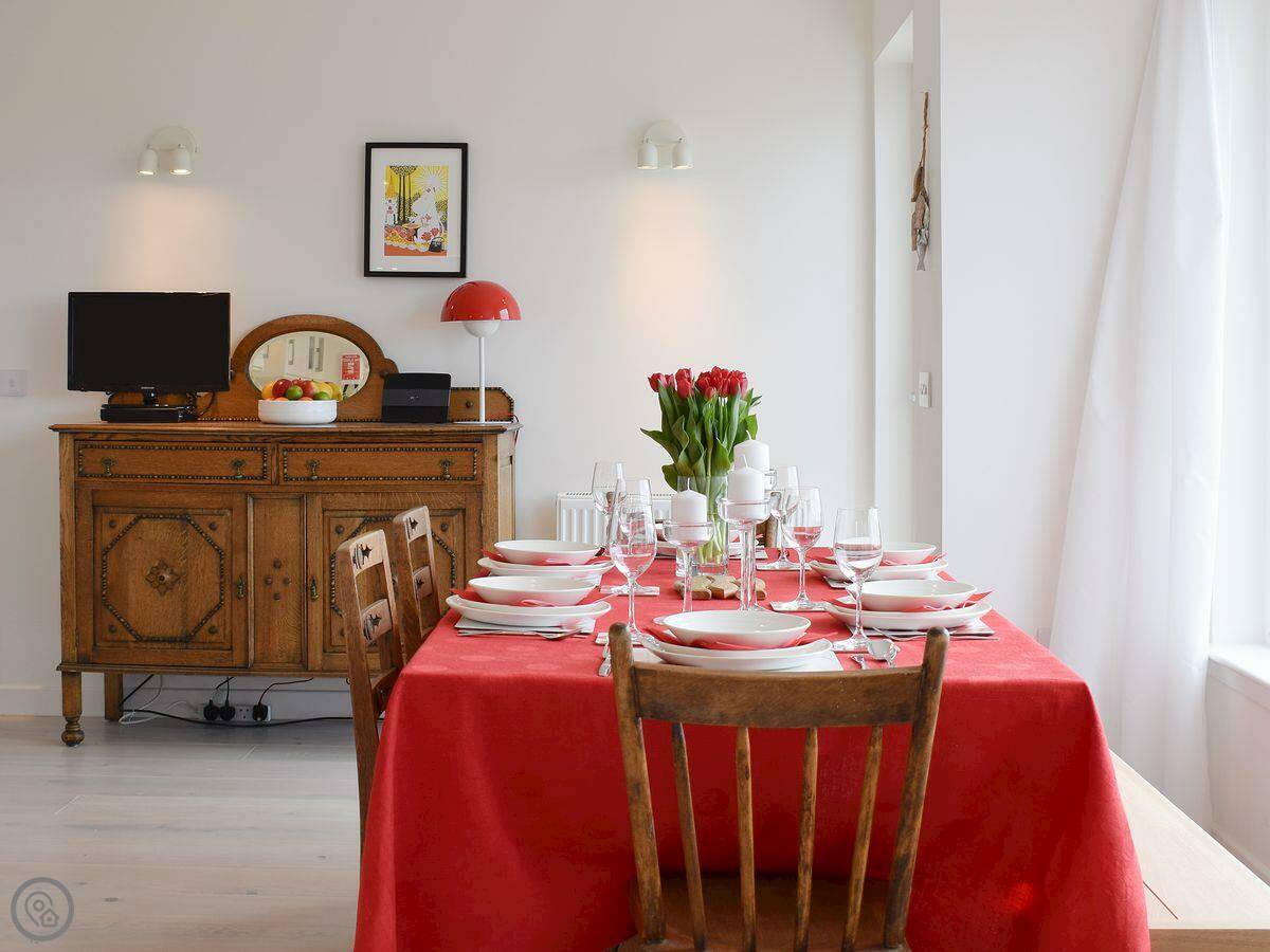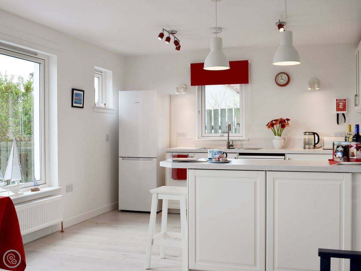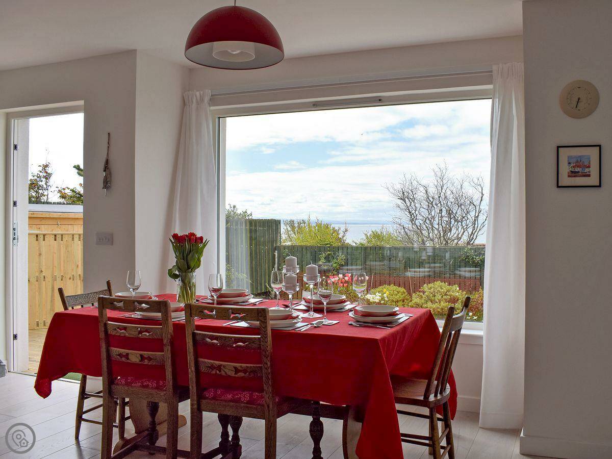 The kitchen is open plan. There's a separate living room upstairs to make the most of the view. You might see seals from there. The garden is at the back, it's enclosed and gets the sun in the evening.