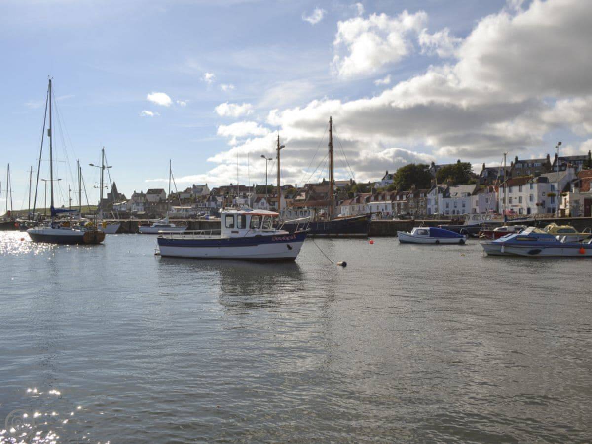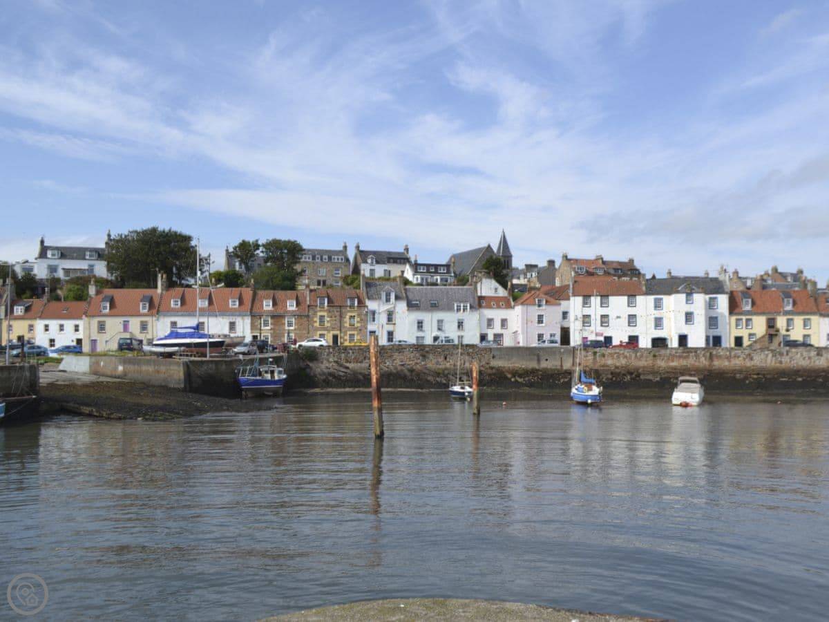 The Fife Coastal Path goes right past the end of the street. You can walk to Pittenweem one way or Elie the other. There are castles like Kellie Castle nearby. For a bigger beach, Elie has a good one.