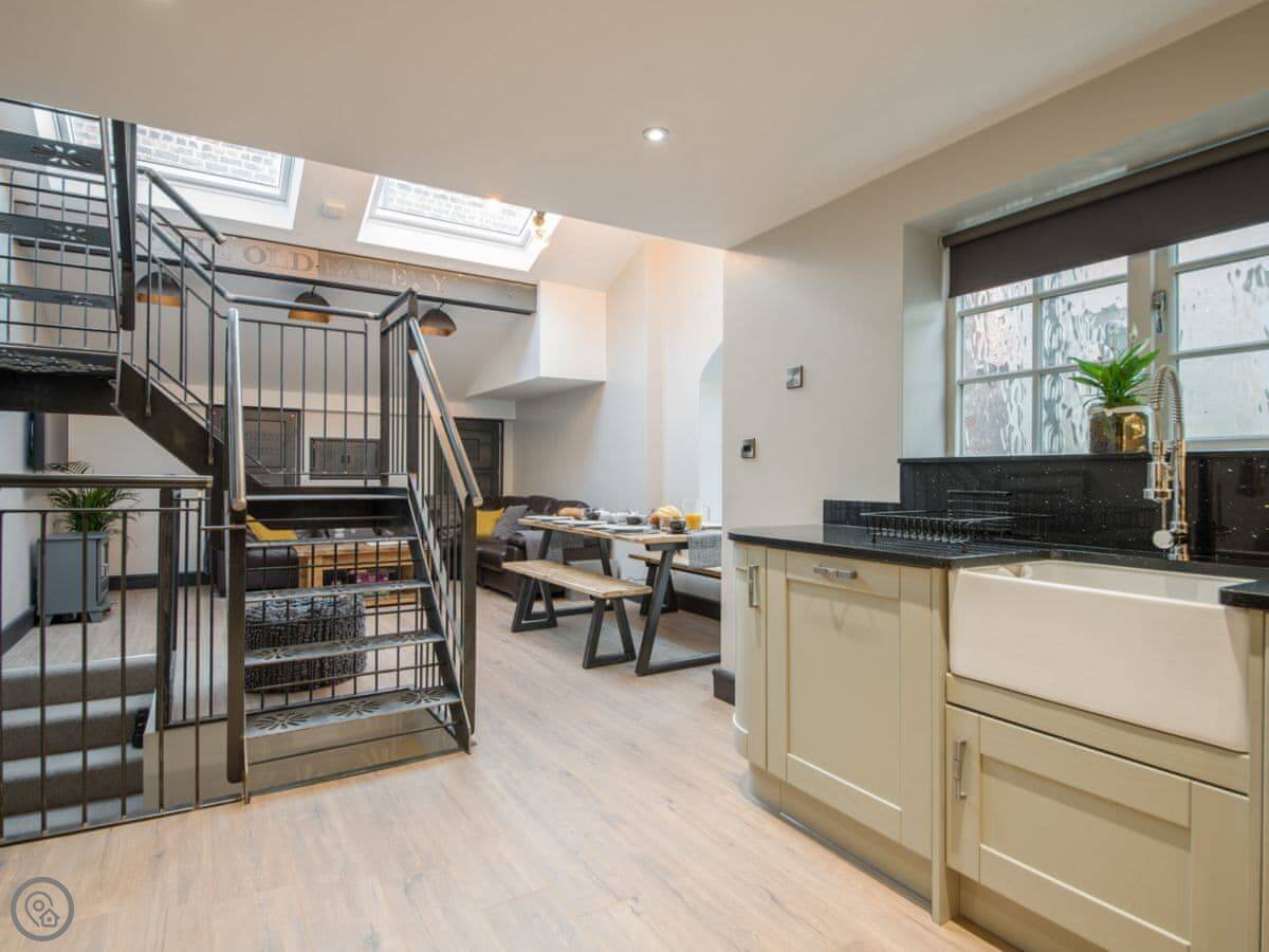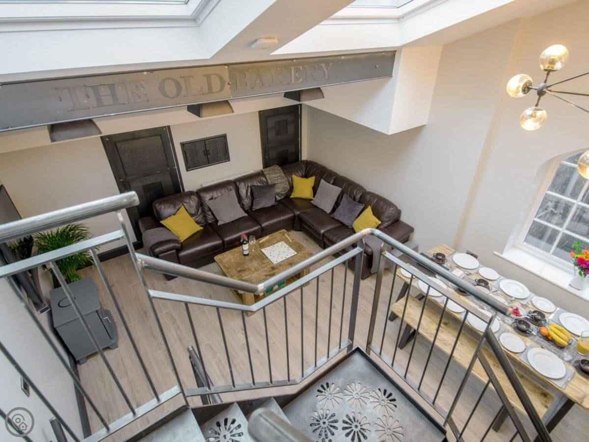 The Old Bakery is a flat in Whitby town centre, on Church Street. It's an old building that's been done up, converted from a bakery. It's on three floors, so there are quite a few stairs. They're a proper, old-fashioned staircase.