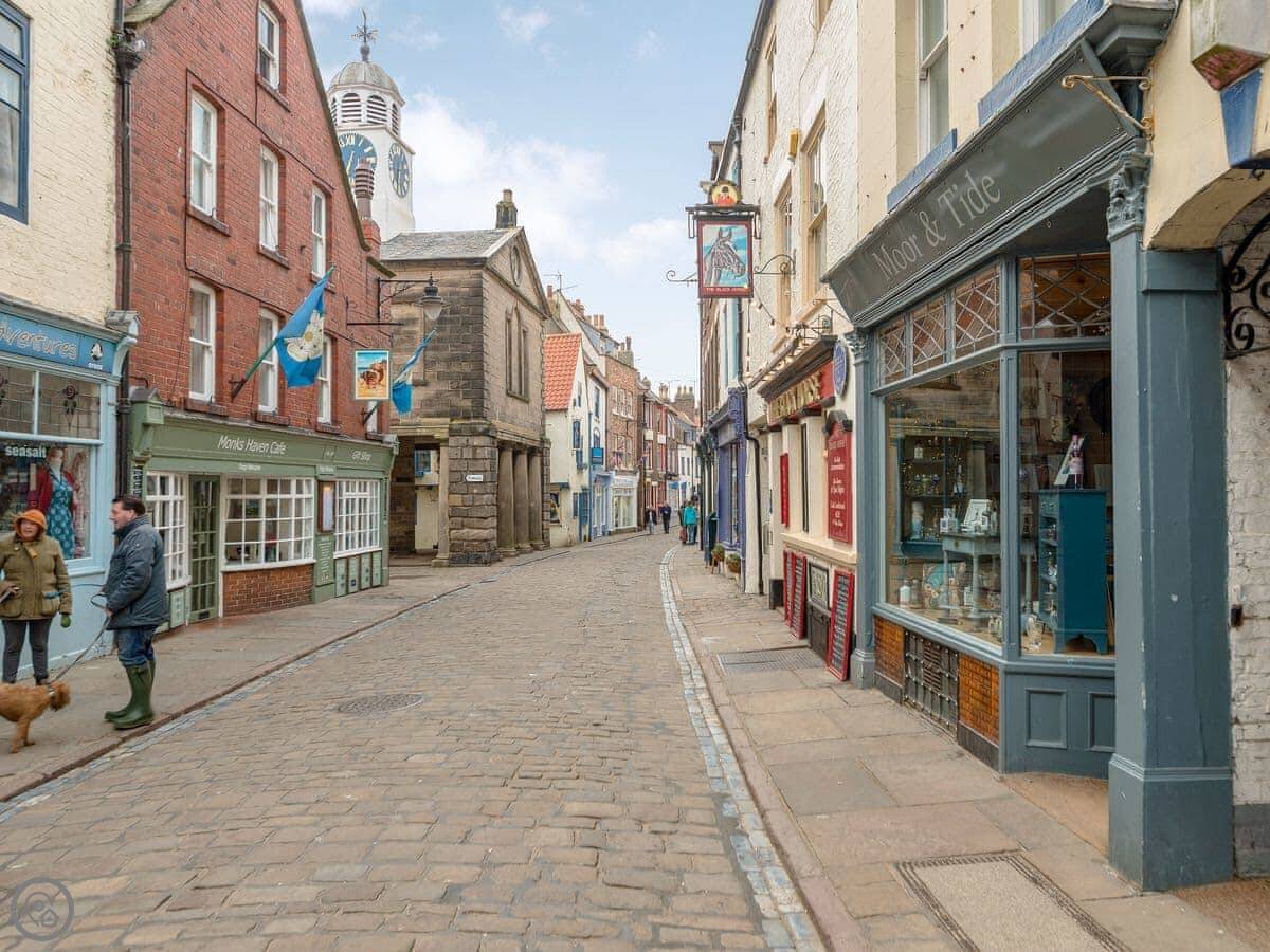 The location is the main thing. You walk out the front door and you're right in the middle of it all. Shops, pubs, fish and chip places, the lot. The harbour is two minutes away. Whitby Abbey is up the famous 199 steps. It's all on your doorstep.