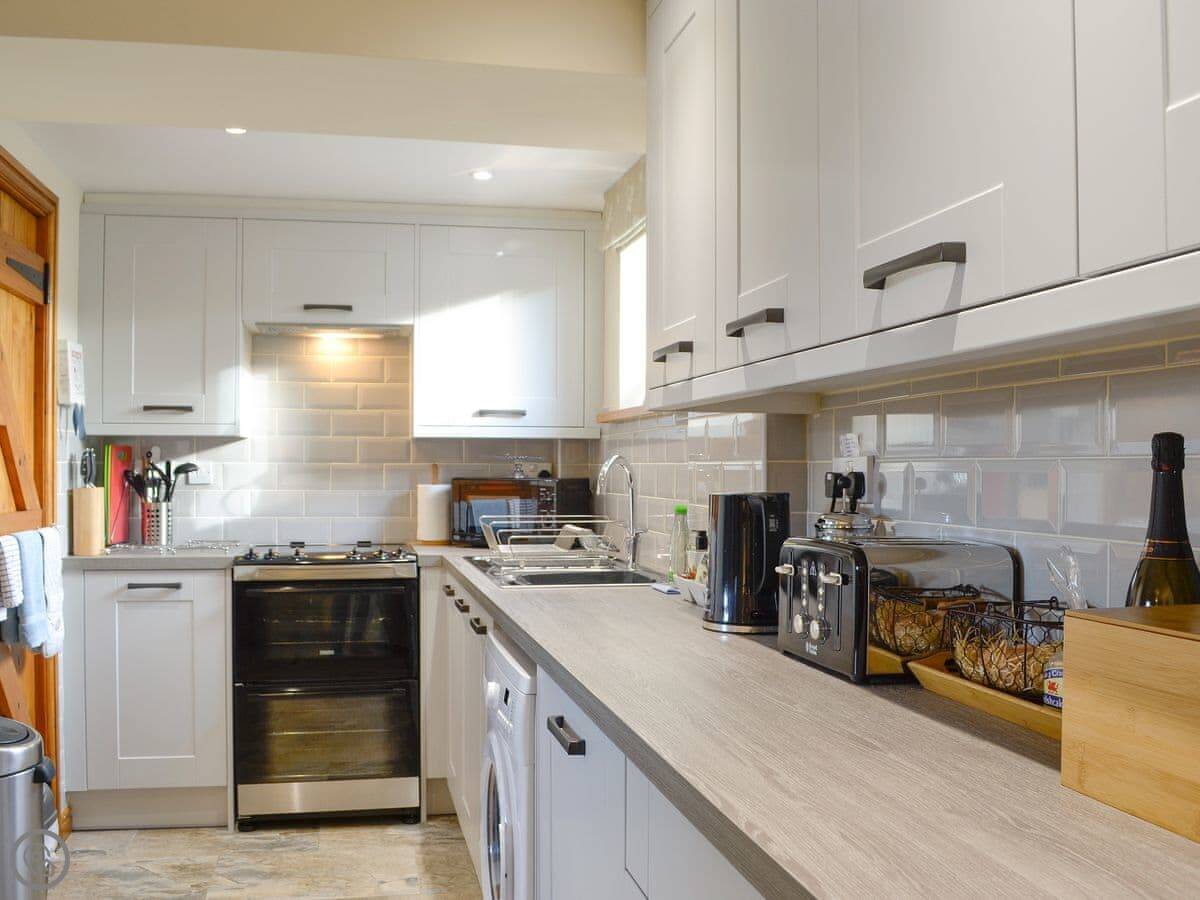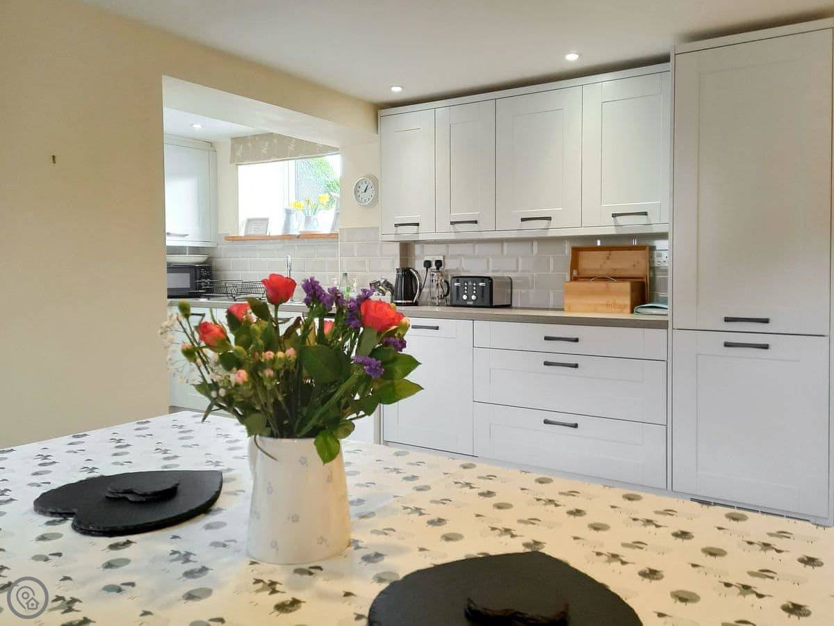 Facilities: it's got a woodburning stove, WiFi, TV, dishwasher, washing machine. Bedding and towels are included. There's a cot, highchair and stairgate if you need them. We allow up to two dogs. You can store bikes.