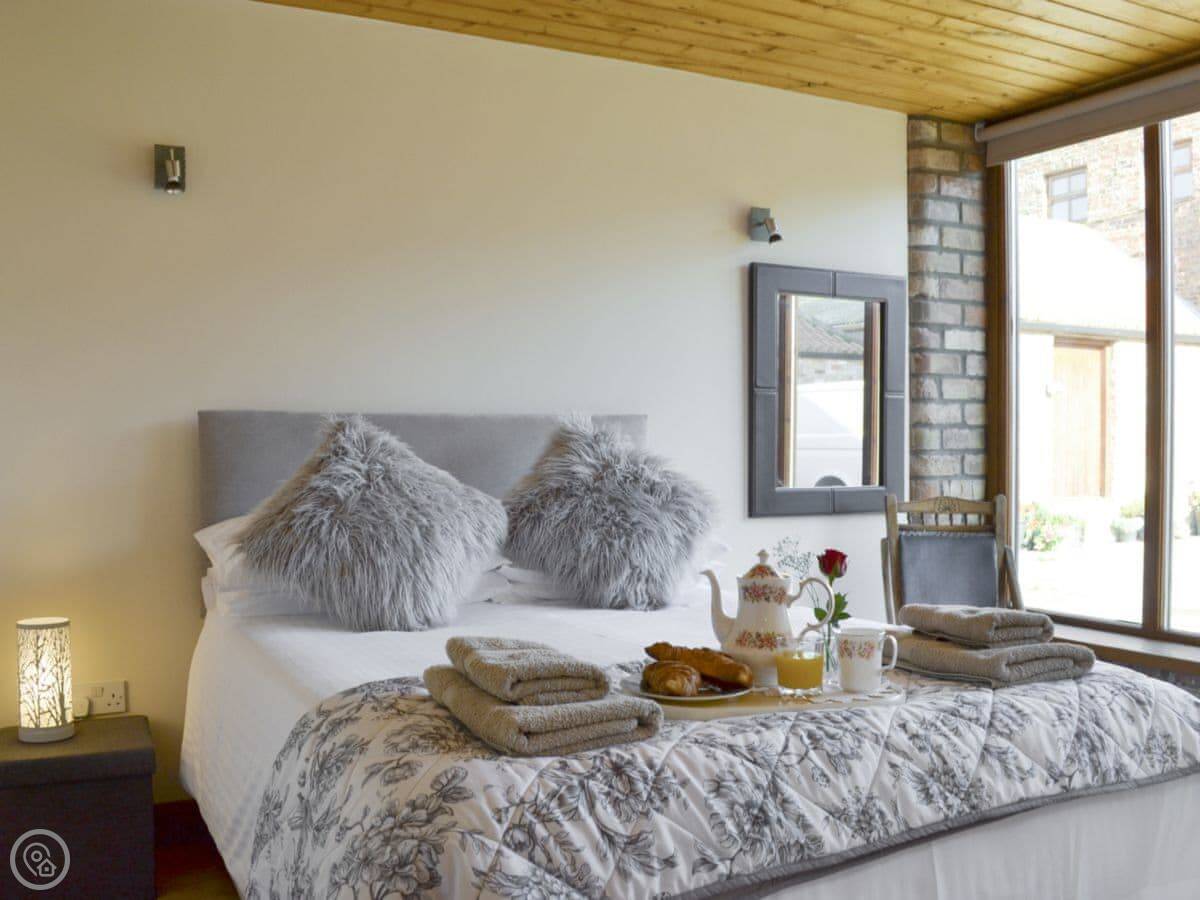 This is Barley Edge. It's in Hornsea, East Yorkshire. You know it's near the coast. The barns are semi-detached and they're set on farmland, looking out towards Hornsea Mere.
