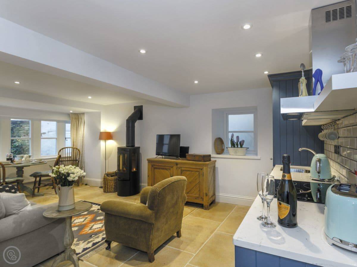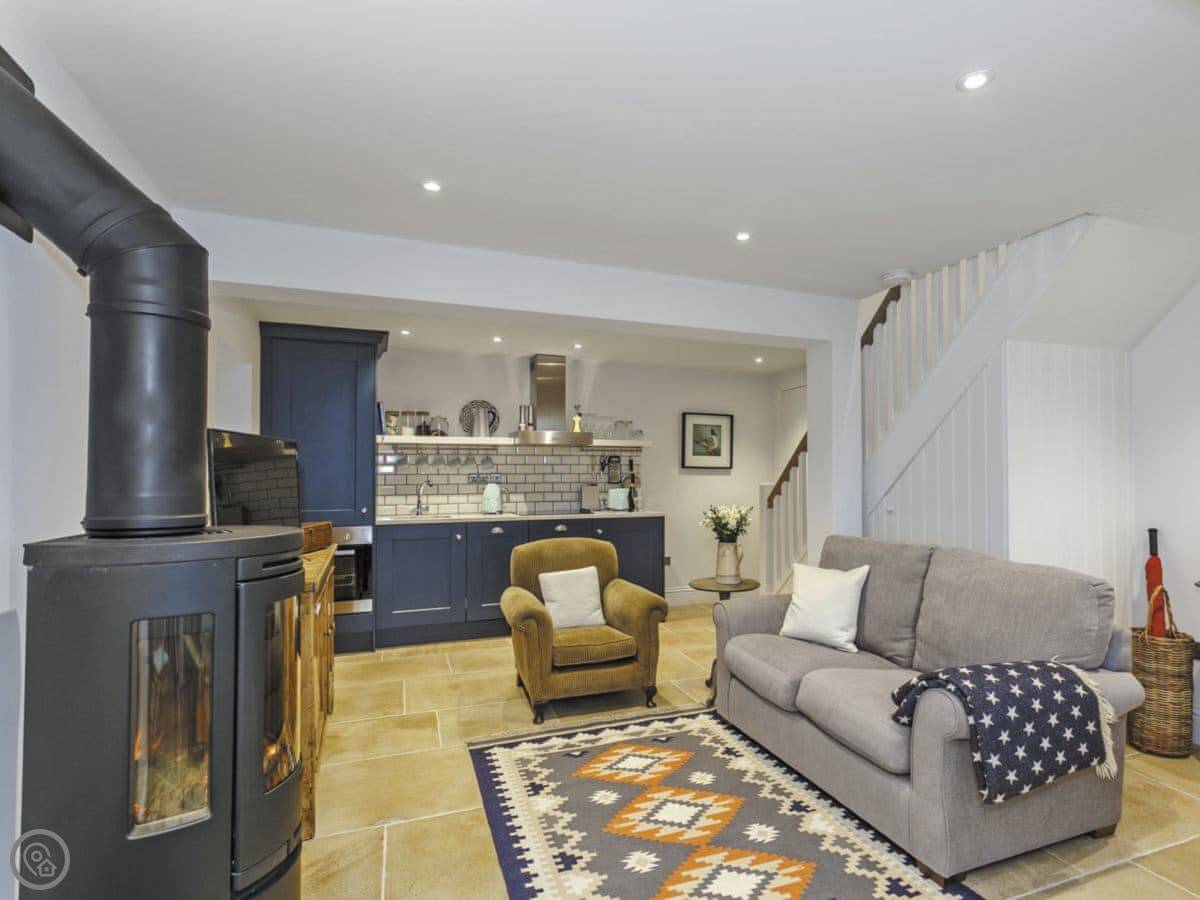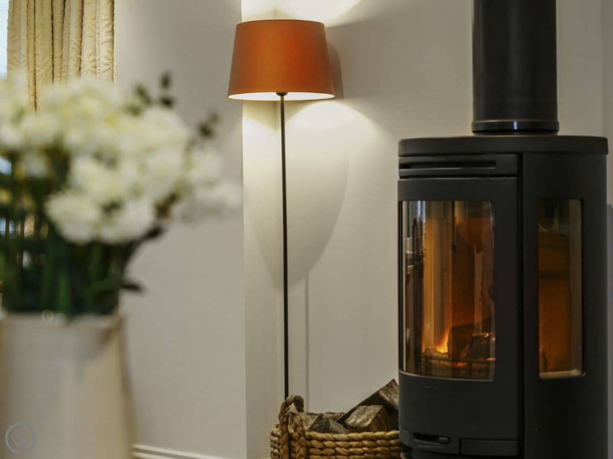 You've got a wood burning stove. It heats the whole place well. The layout is open plan downstairs. The stairs are okay, but we fitted a stairgate at the top just in case.