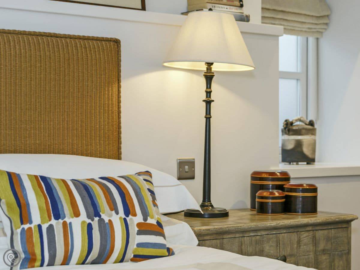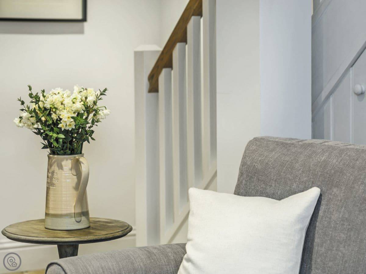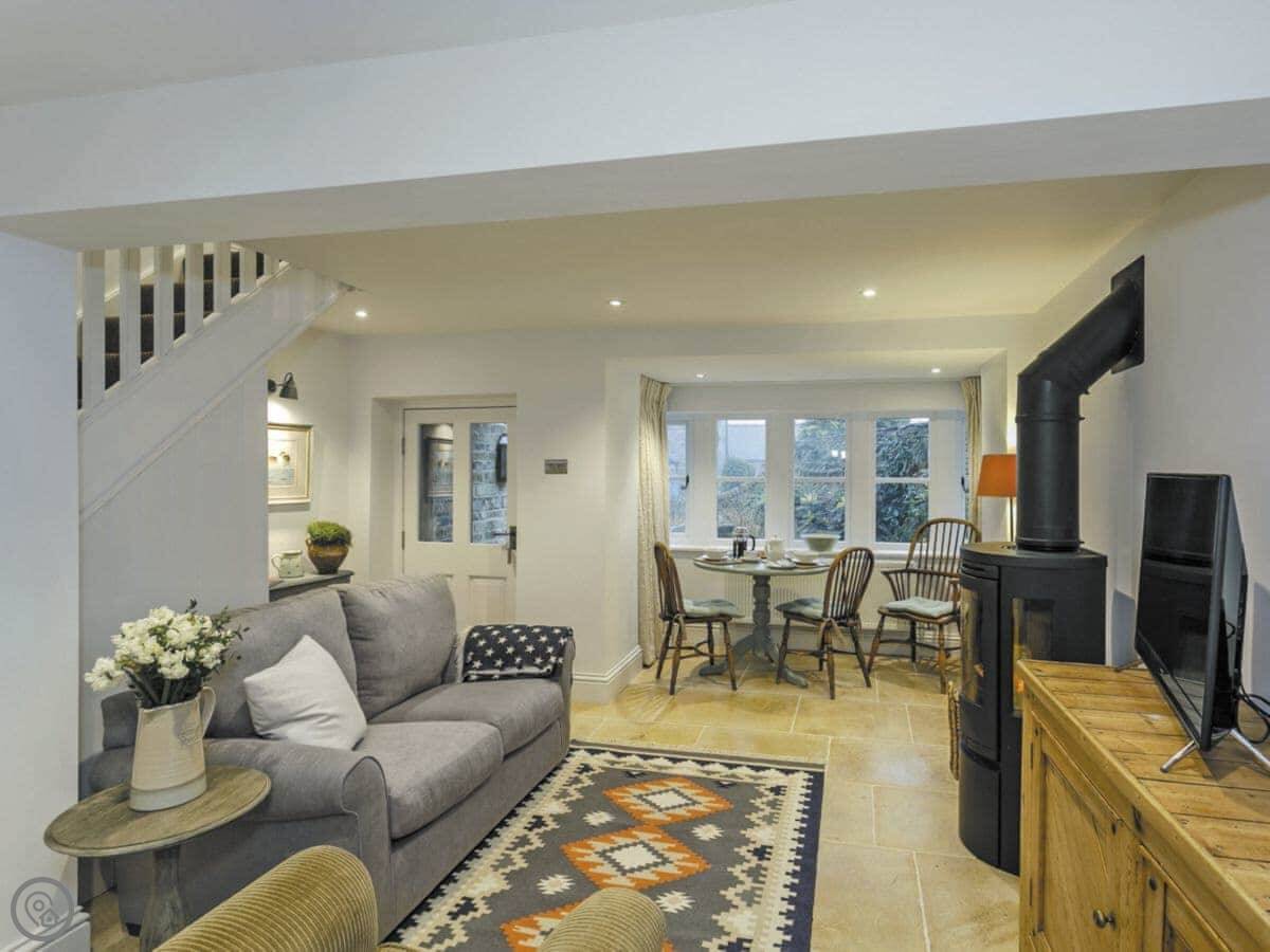 You've got a wood burning stove. It heats the whole place well. The layout is open plan downstairs. The stairs are okay, but we fitted a stairgate at the top just in case.