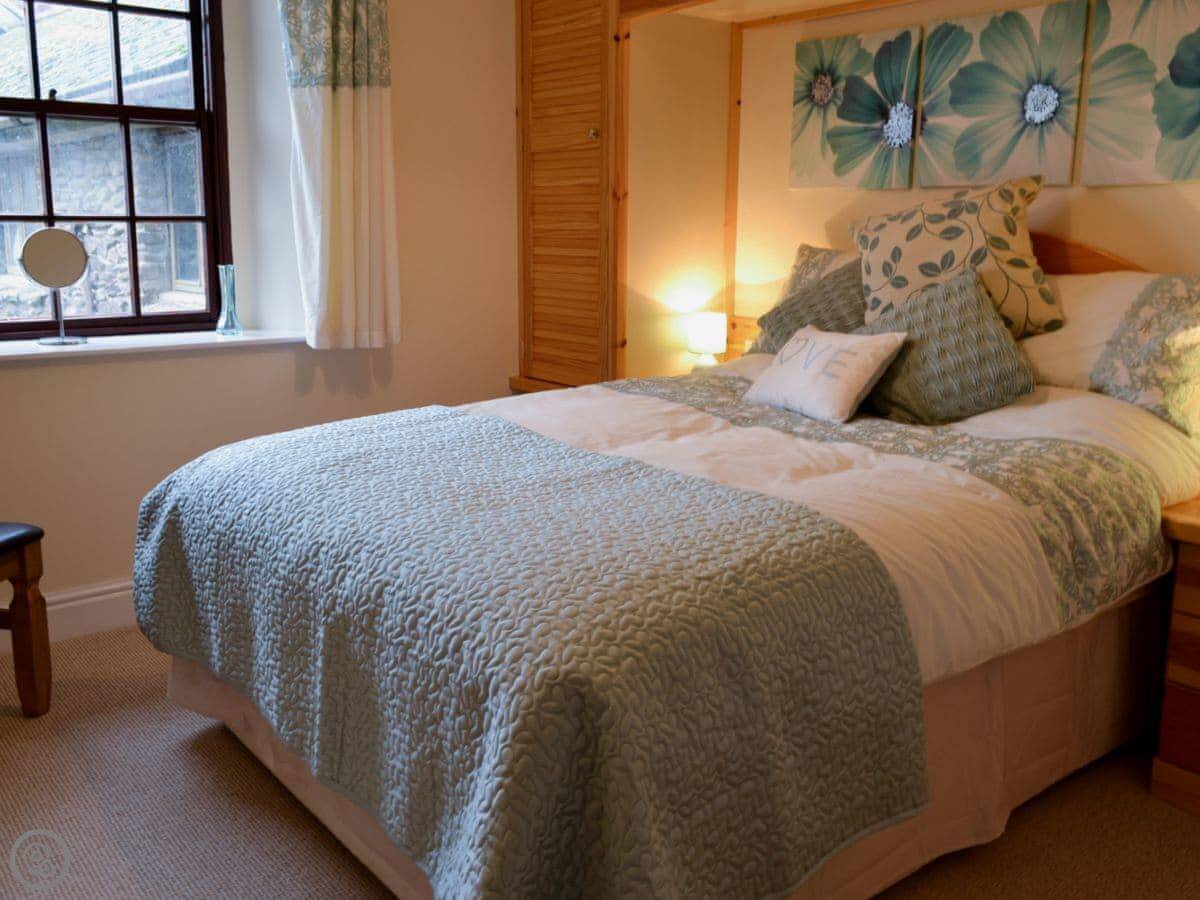 The Farmhouse is on our working farm, just outside South Radworthy. It's one of three places you can rent here. It's semi-detached, attached to Bridge House. You get your own bit of patio garden out the front.