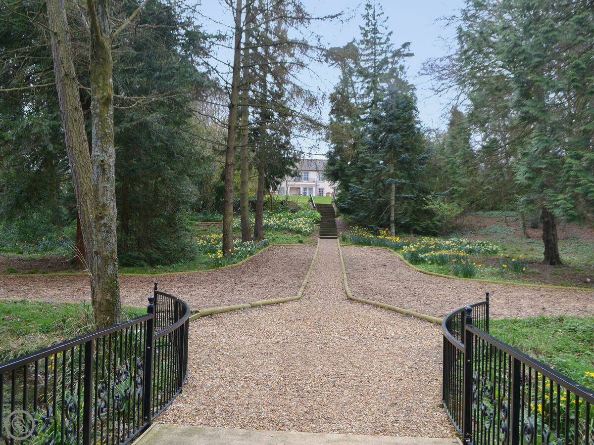 The house sits in about eighty acres of our estate grounds. Thirty acres of that is gardens and lawns, the rest is woodland. There's a walled rose garden with a summerhouse. The grounds have things like crazy golf, play areas, and football pitches. You can walk the woodland paths, including an arboretum and some wetlands. We sometimes run events like laser tag or bushcraft on site.