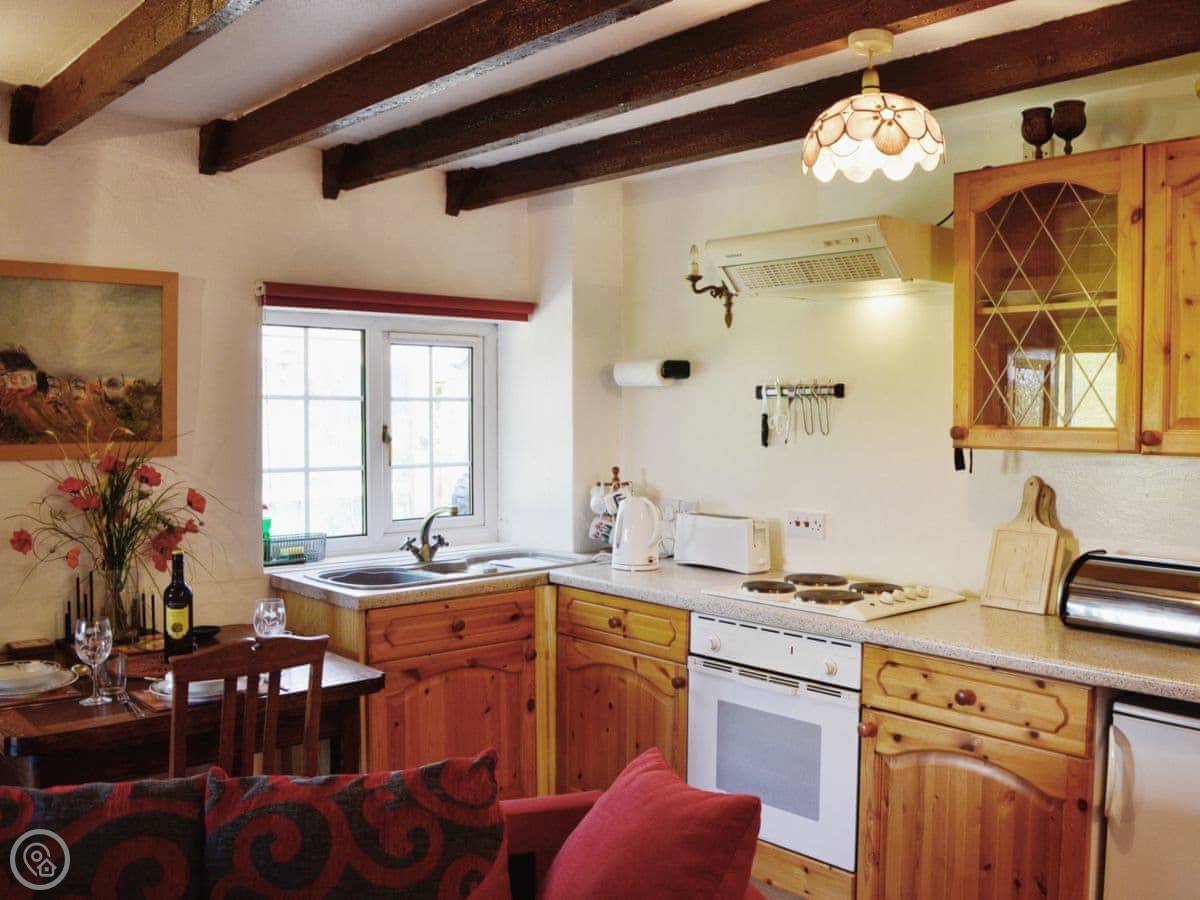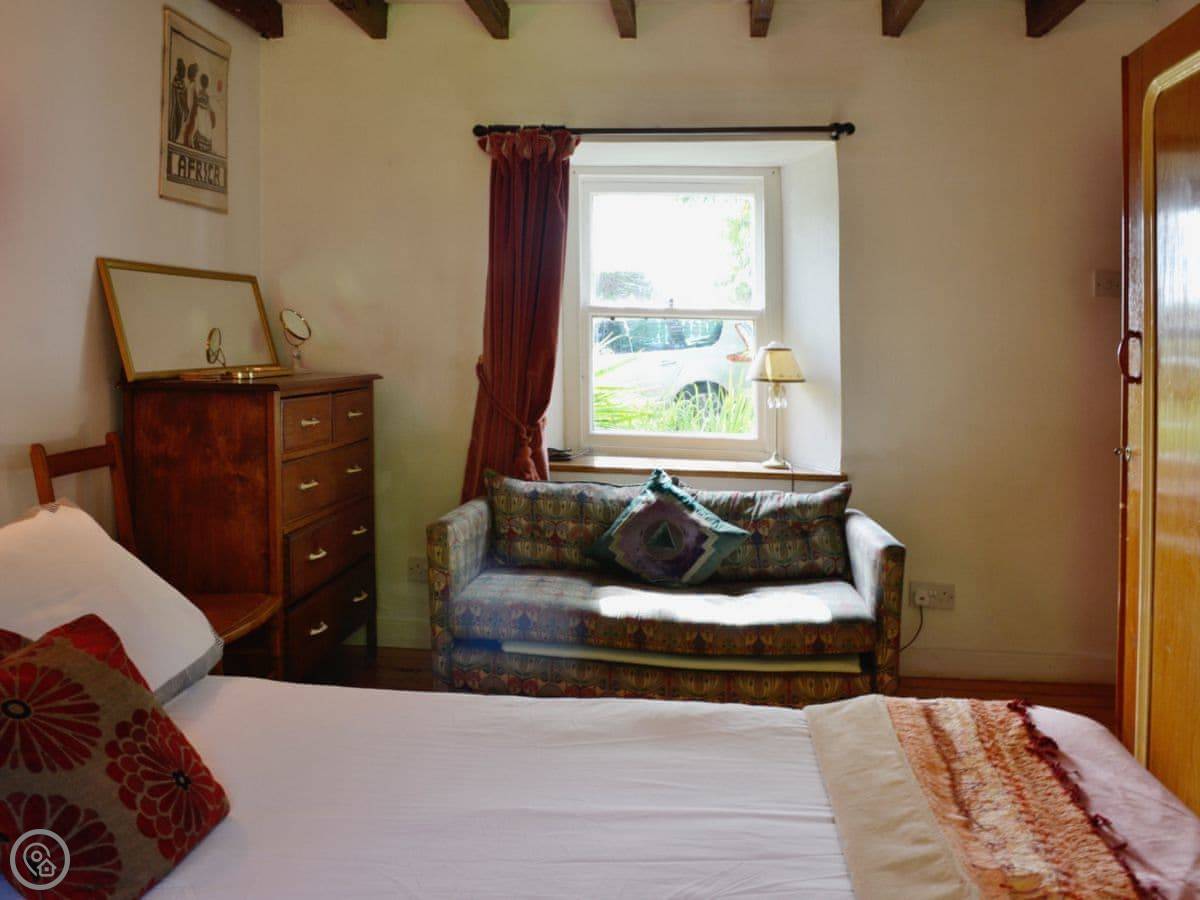 In the house, you've got a woodburning stove for cold evenings, a washing machine, WiFi, and a TV. Bedding and towels are included. There's parking right outside. You can bring up to three dogs. The place is all on the ground floor, so no stairs to worry about.