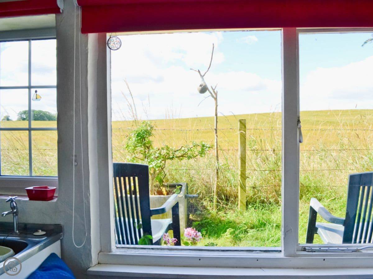 The Cottage is a little old house on a quiet lane at the edge of St Cyrus village. It's from the 1800s, semi-detached, and looks out over fields at the back.