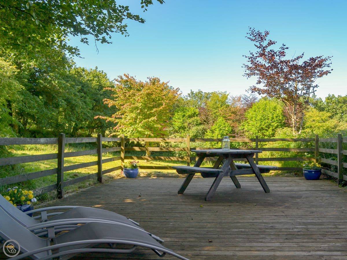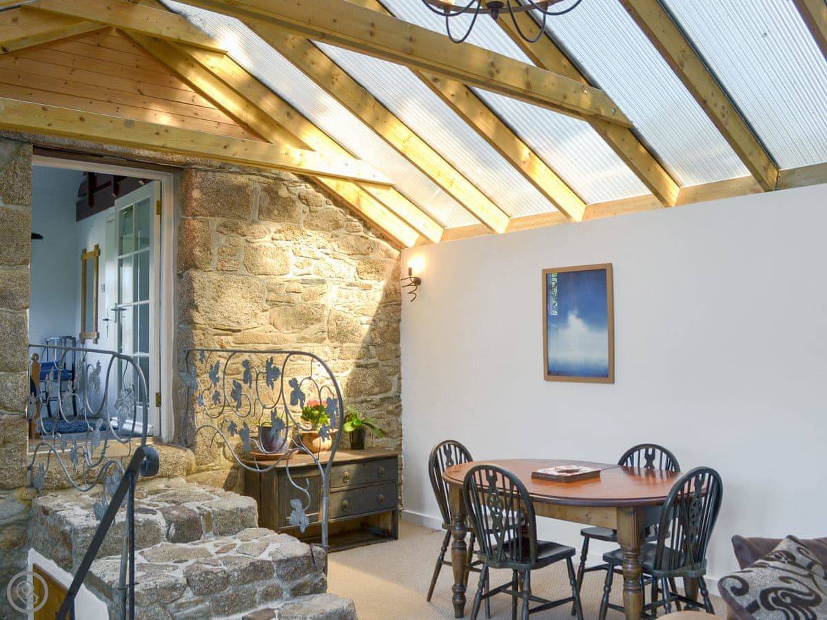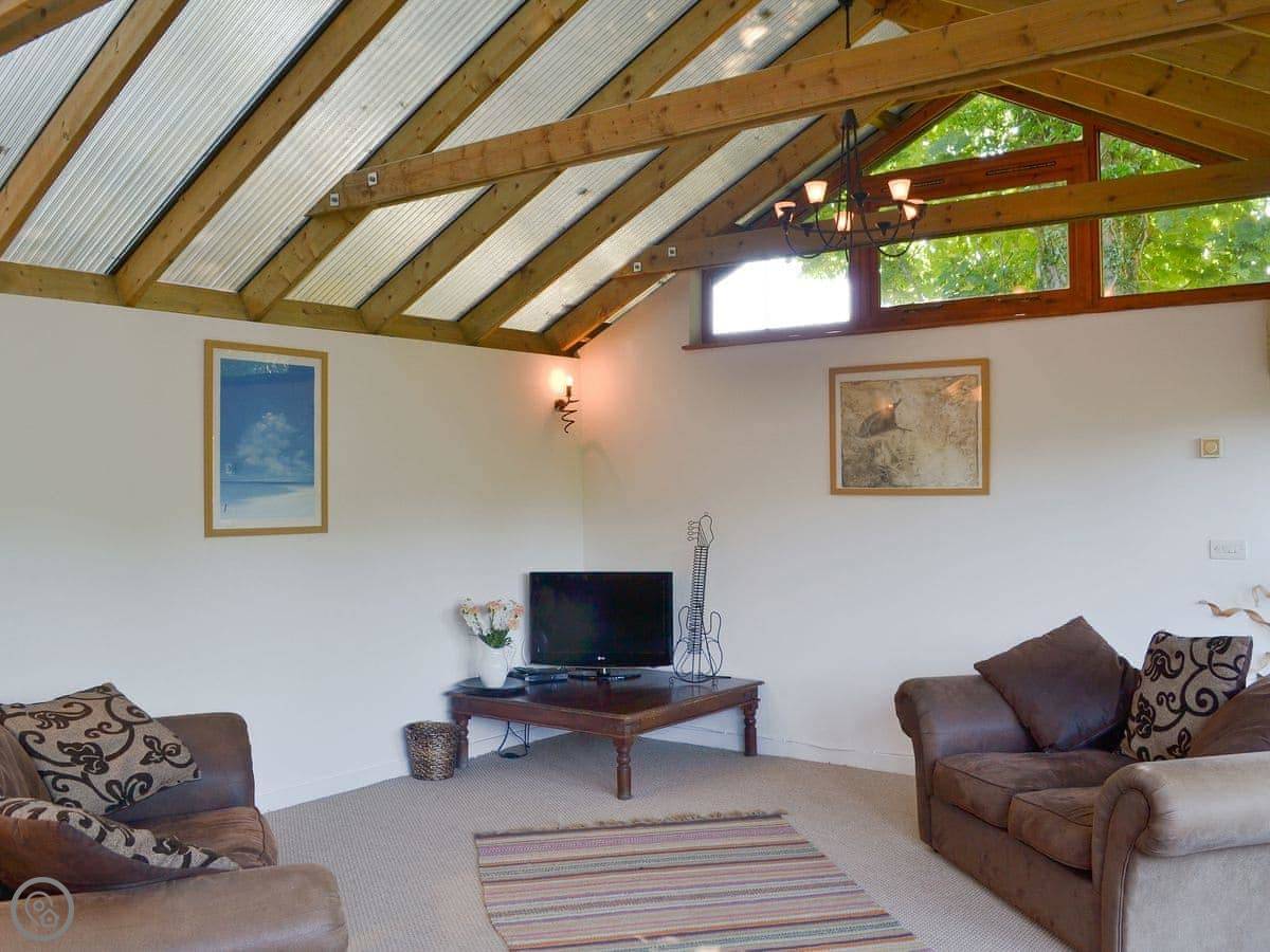 With a quirky design and interior this barn is a barn with a difference. Natural granite steps lead from the living room to the bedroom with ornate iron work balustrades, cosy double bedroom with mezzanine, a modern bathroom and kitchen with slate flooring. The main feature of the house is the spacious living/dining room, which is light, bright and airy with vaulted ceiling and large glass doors opening onto a private decked patio garden overlooking a little paddock. Perfect for lazy summer days.