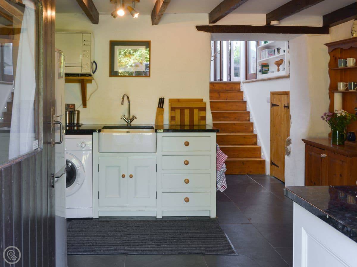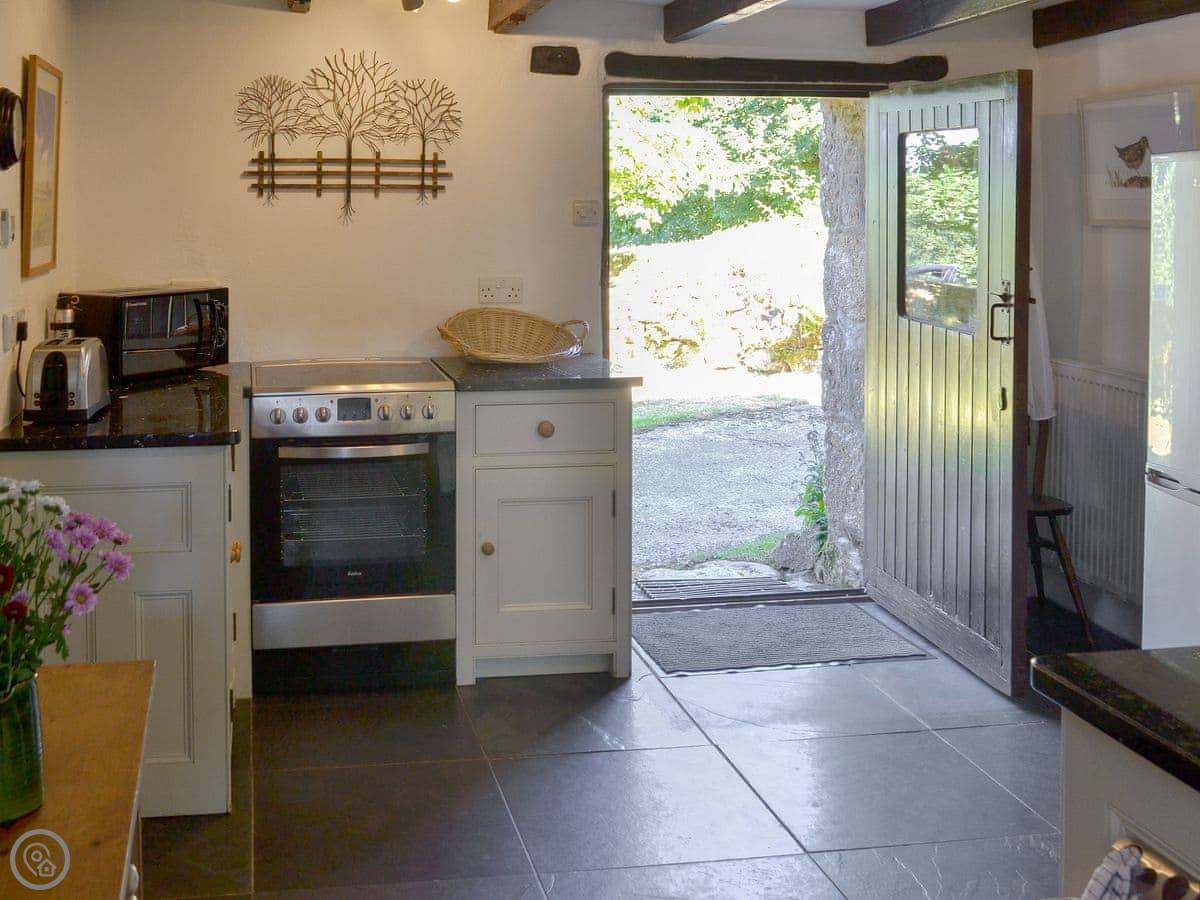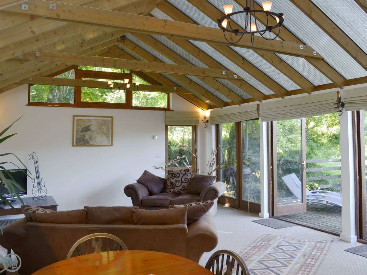 With a quirky design and interior this barn is a barn with a difference. Natural granite steps lead from the living room to the bedroom with ornate iron work balustrades, cosy double bedroom with mezzanine, a modern bathroom and kitchen with slate flooring. The main feature of the house is the spacious living/dining room, which is light, bright and airy with vaulted ceiling and large glass doors opening onto a private decked patio garden overlooking a little paddock. Perfect for lazy summer days.