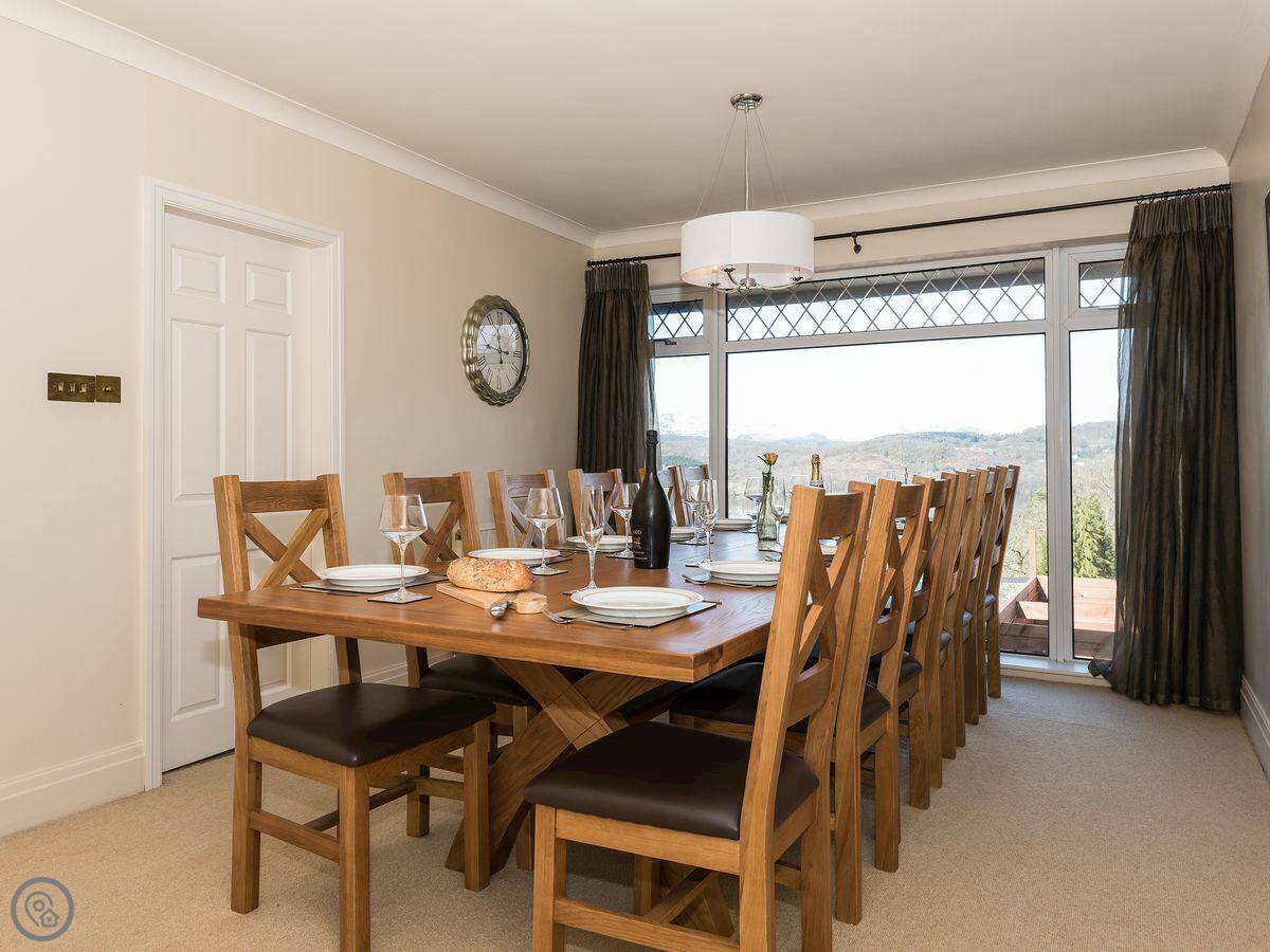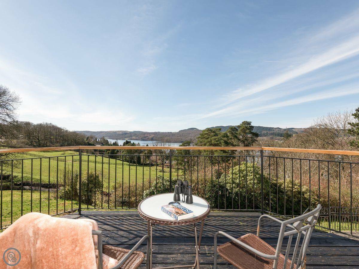 North Dean is up on Ghyll Head. It's detached and looks out over Windermere. The view really is the main thing. You get it from the main living room, the dining area, and some of the bedrooms. There's a big terrace and a balcony off the living room to sit out on.