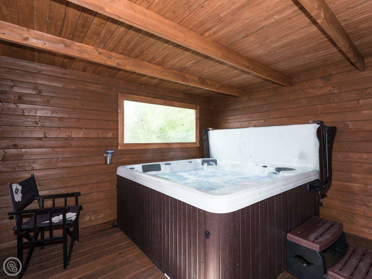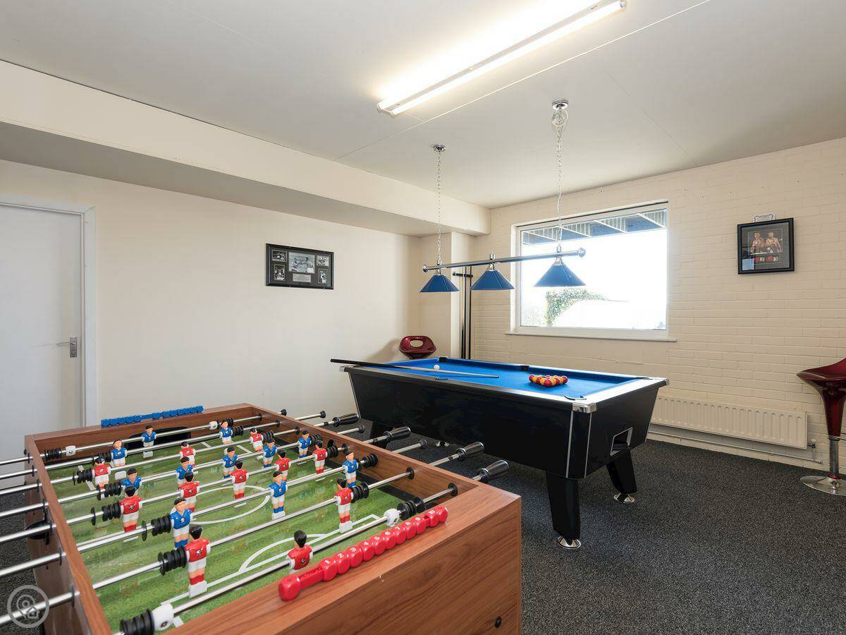 The indoor pool is heated. There's a changing area and some seats next to it. You'll need to bring your own towels for the pool. The hot tub is outside under a cover. The games room has a pool table and table football.