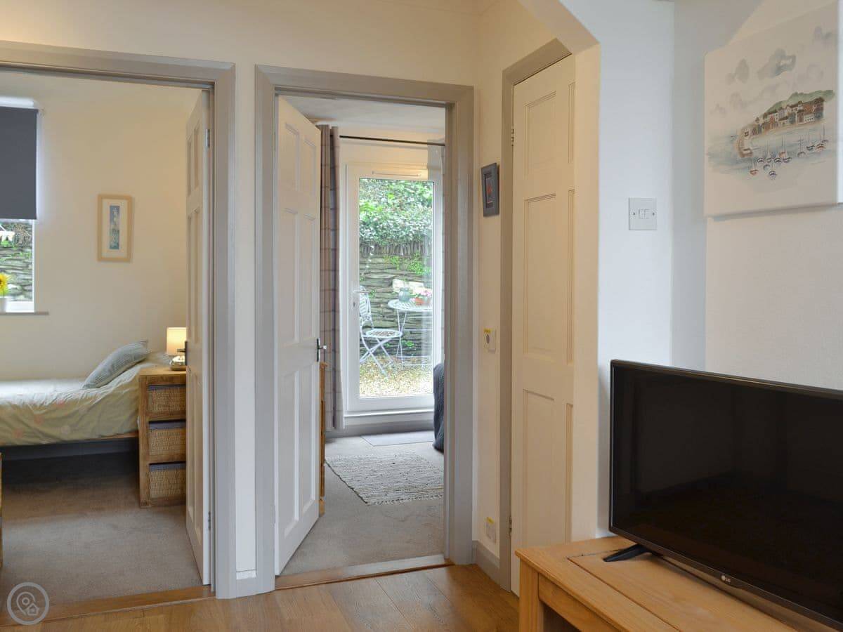 It sleeps four in two bedrooms and has one bathroom. It's got a 4 Star rating, so it's well-equipped and comfortable. Being on the ground floor means no stairs inside, which is handy.