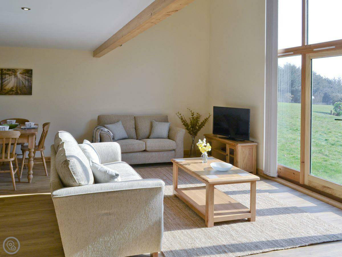 Kingfisher Lodge is in Hainford, Norfolk. It's one of two lodges next to a private lake. The view from the big window is of the water. It's very quiet.