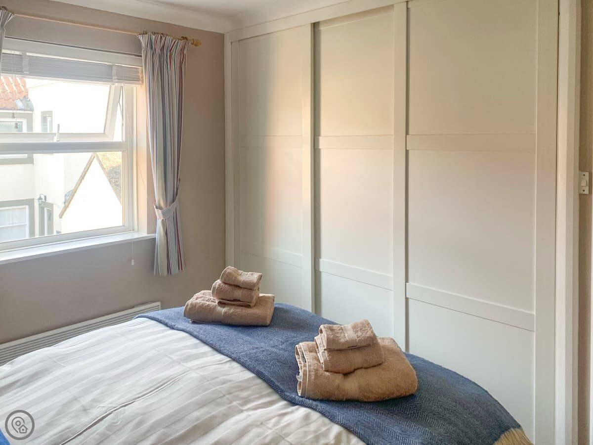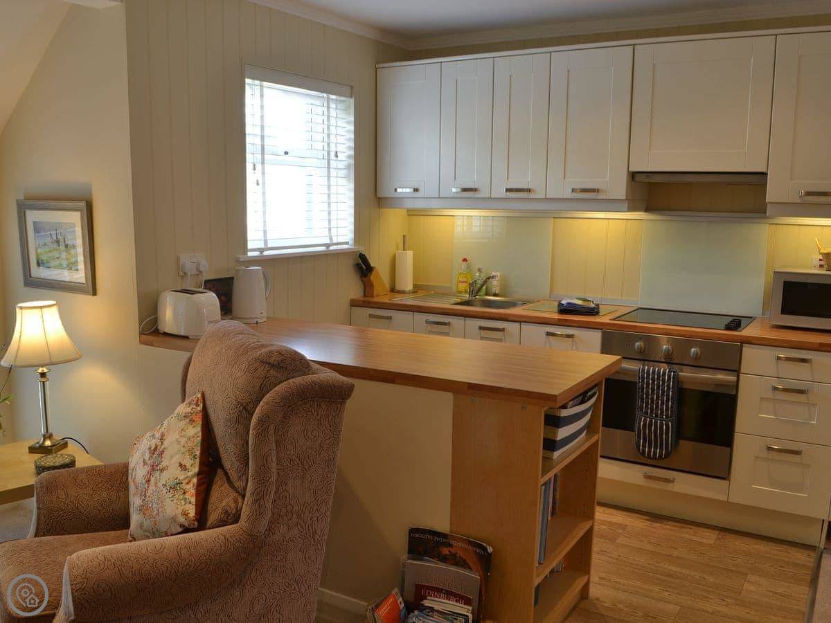 For facilities, it's got a dishwasher, Wi-Fi, TV, and a shower. Bedding and towels are included. There's a stairgate at the top of the internal stairs if you need it. No pets, I'm afraid.