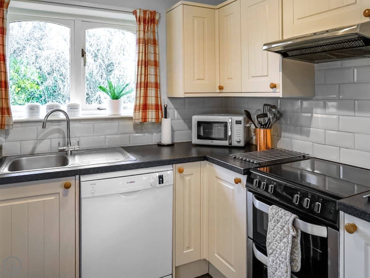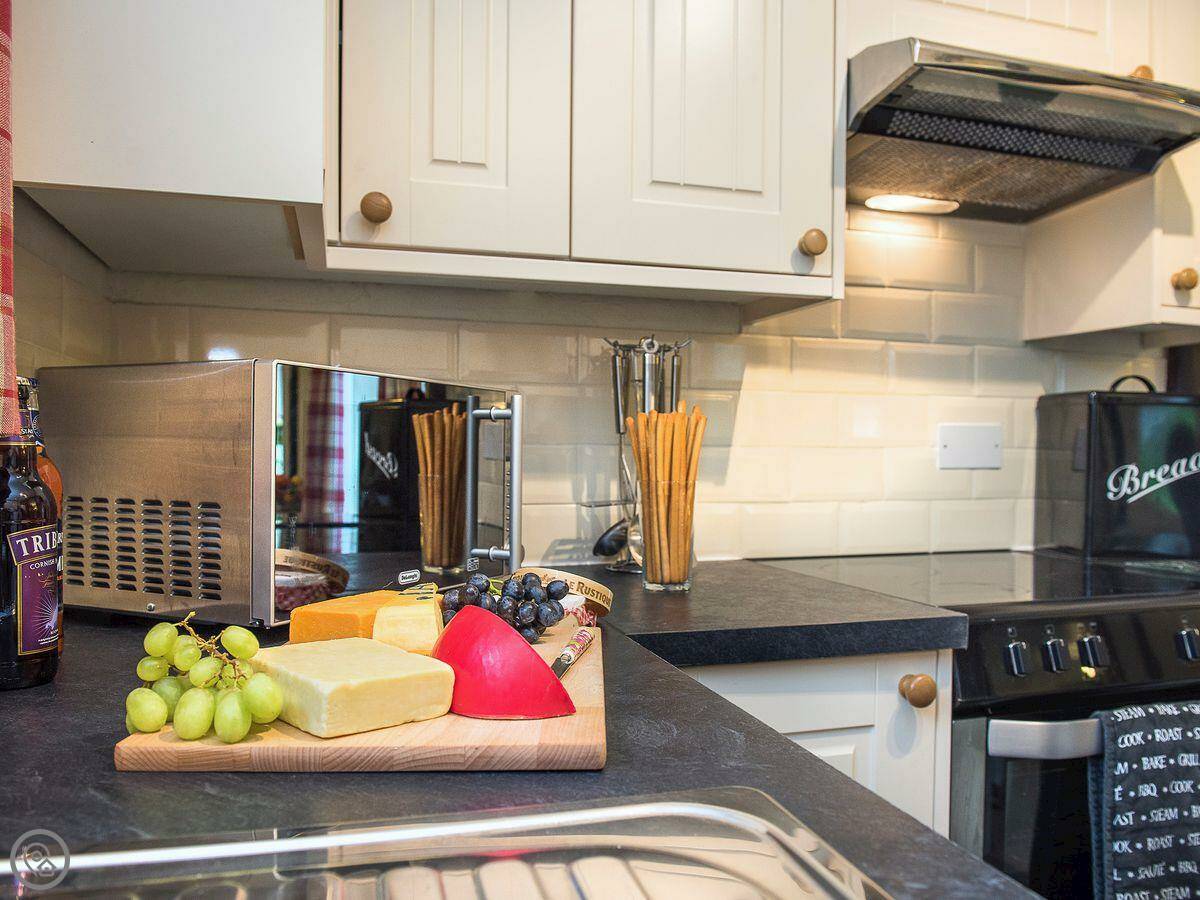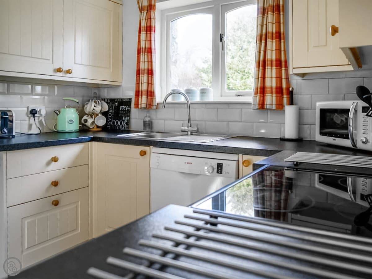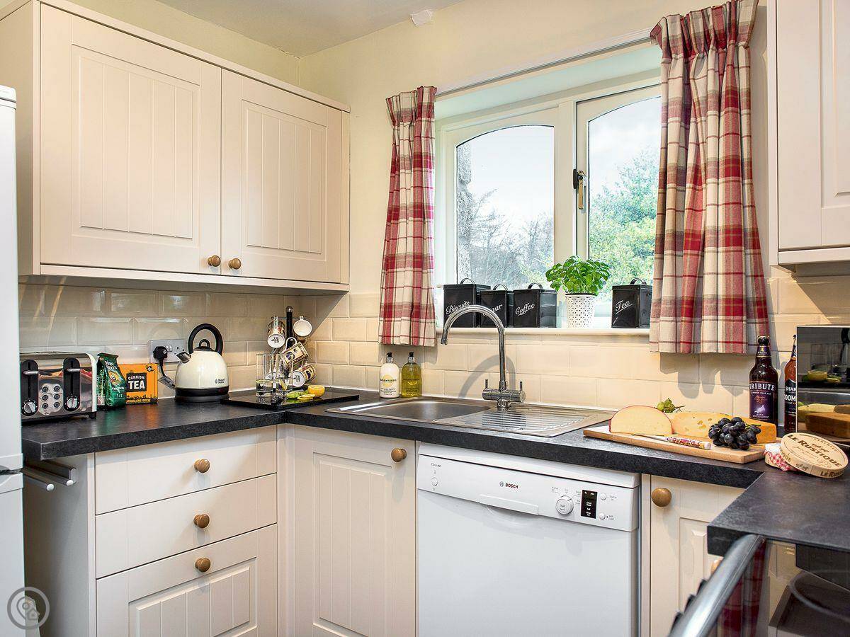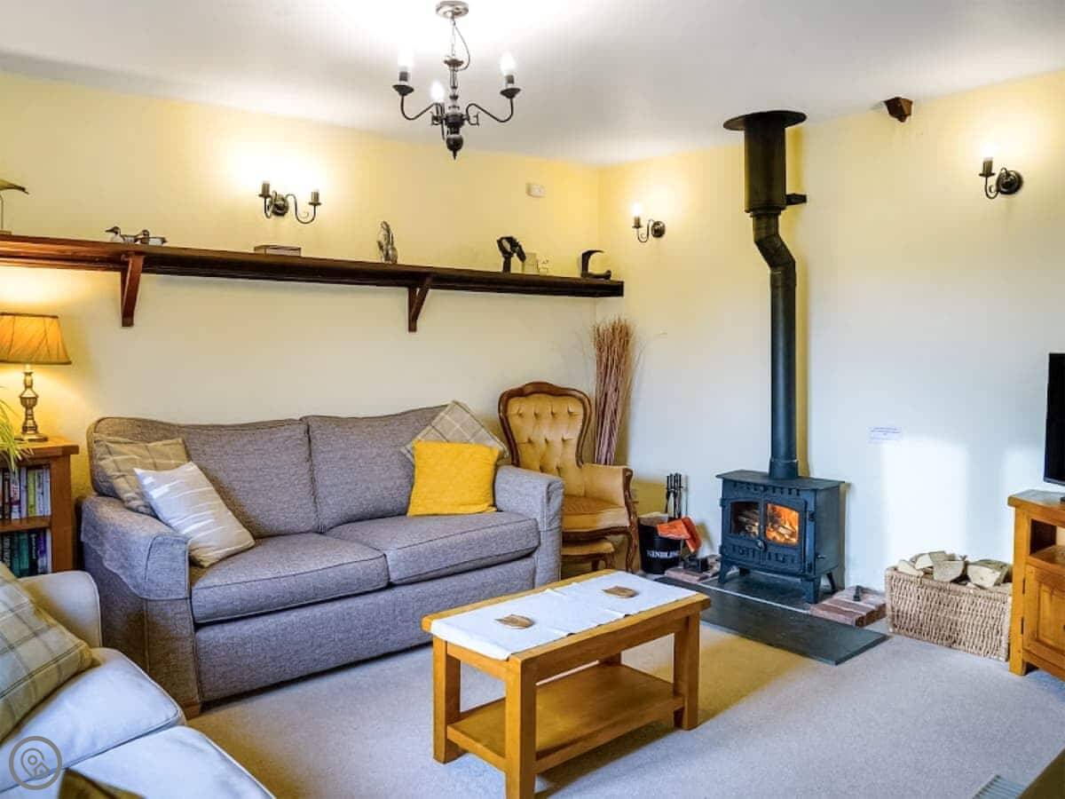 Inside, there’s a woodburning stove, WiFi, a TV, dishwasher and washing machine. Bedding and towels are included. There’s a cot and highchair if you need them. Parking is right outside.