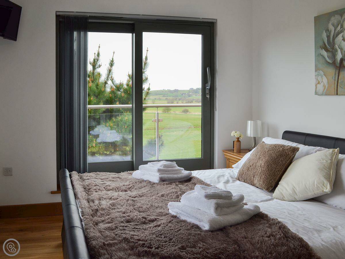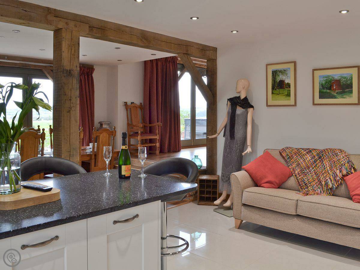 It sleeps eight people. There are four bedrooms and three bathrooms, so it works for a couple of families. One bathroom is a wet room on the ground floor. The main living area is open plan, with big bi-fold doors that open onto the terrace.